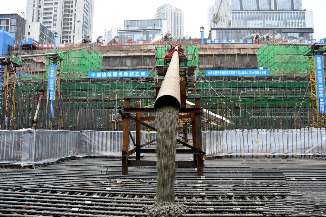 2022年12月17日,由中建西部建设西南有限公司(以下简称“西南公司”)主供的中海成都天府新区超高层项目底板4.1万方大体积混凝土顺利浇筑完成。