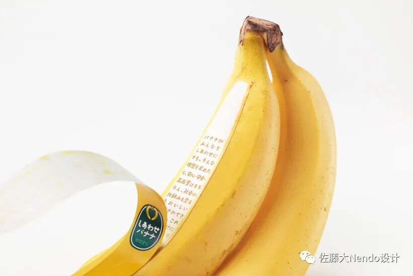 当我们被要求设计包装时,我们不想仅仅因为高质量而想出一些奢侈的东西:这对于一个环保香蕉来说是完全不合适的。所以我们决定避开盒子或包装材料,在香蕉皮的表面贴上贴纸。贴纸有两层,第一层忠实地再现了香蕉皮的质感和颜色,甚至逼真地再现了瘀伤和变色。贴纸有一部分被撕掉了。当这根香蕉被剥开时,第二个标签就会出现,这个标签是一条信息,背景是香蕉肉的图像。比起简单地添加一些关于香蕉的信息,我们创造了一种氛围,让你不得不去阅读它背后的故事。