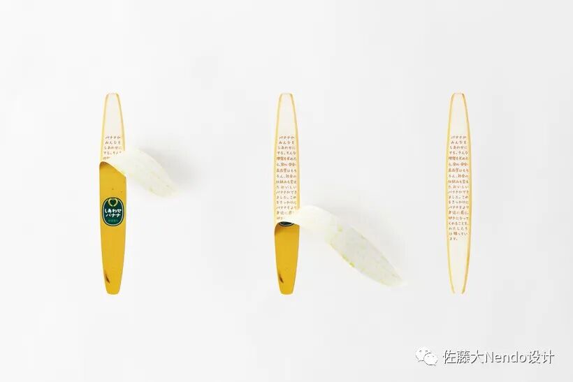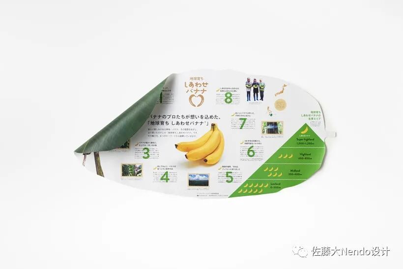 此外,我们还设计了一个纸质的手提袋,让购买香蕉的人可以带着它们回家。这个袋子的设计是这样的,当把绳子把手拿掉时,你可以很容易地把香蕉拿出来。如果你把袋子展开,你很快就会发现它是由一张大“香蕉叶”形状的纸做成的。我们在包装袋的背面贴上了“shiawase banana”的详细描述,以确保香蕉可以多次享用。