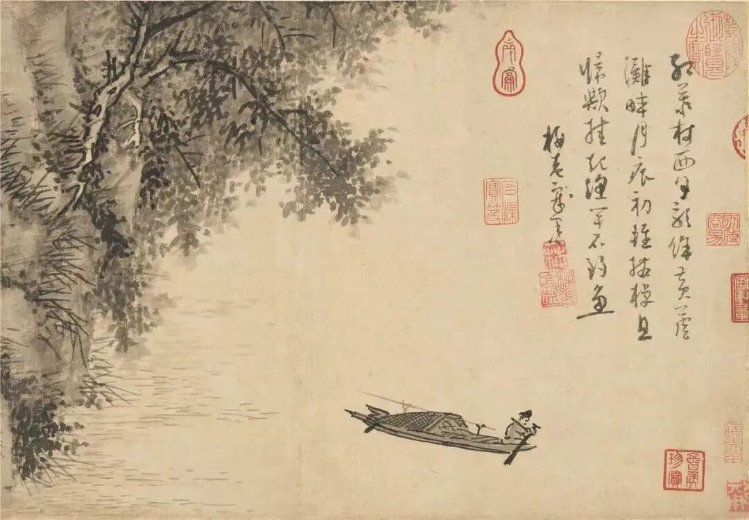 (元)吴镇 芦滩钓艇图(局部)纸本墨笔 台北故宫博物院藏