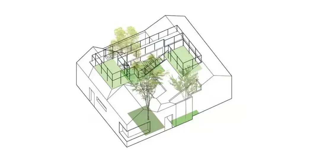 在原有建筑的现状尺度与限高基础上,设定不同标高,向地上和地下扩展、加大空间密度,一种连续“叠层”的合院空间随之展开。于是,这不再是“传统”的空间,设计师“立体叠合”了园林与四合院, 以“叠合院”之态新生,虚与实之间, 有了更多的面积,有了更多的“偶遇”,有了更多的“彼此的风景”。