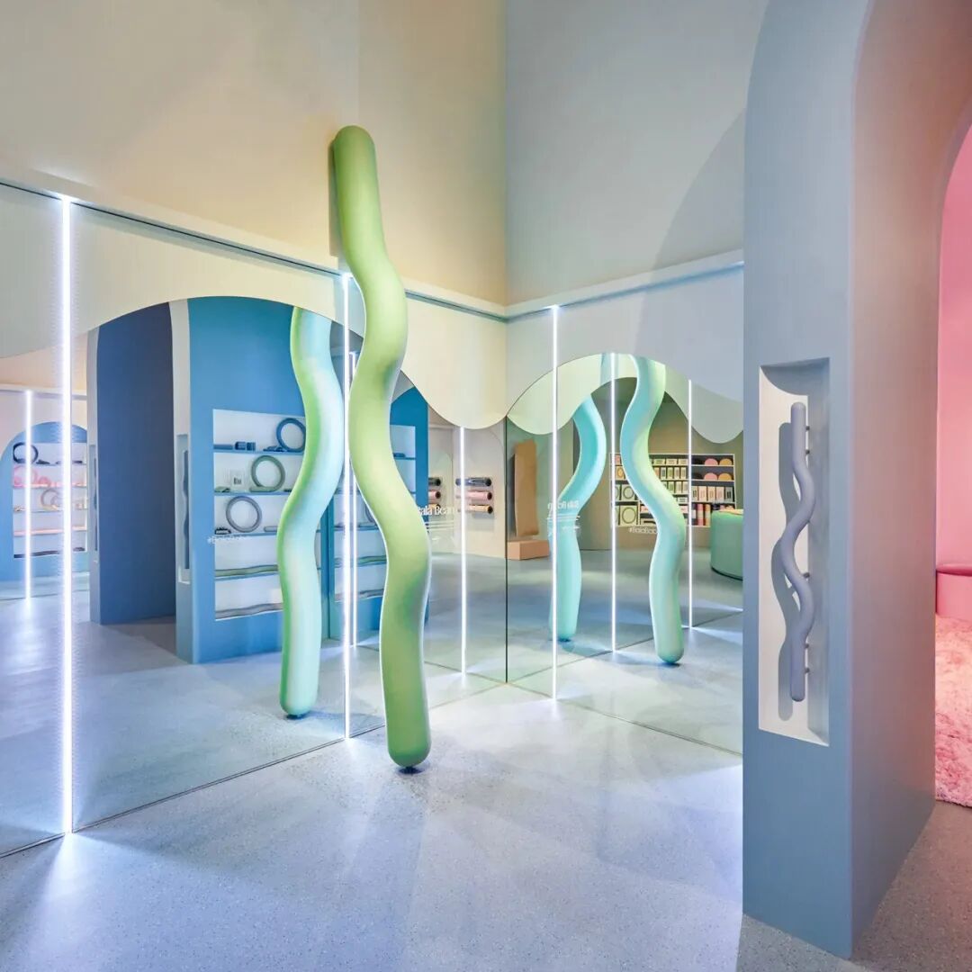 在过去的一年里,夸张的零售商店的室内设计呈现出一种增长趋势,既有包含超现实雕塑和装置的商店,以及把商店完全改头换面的形式。