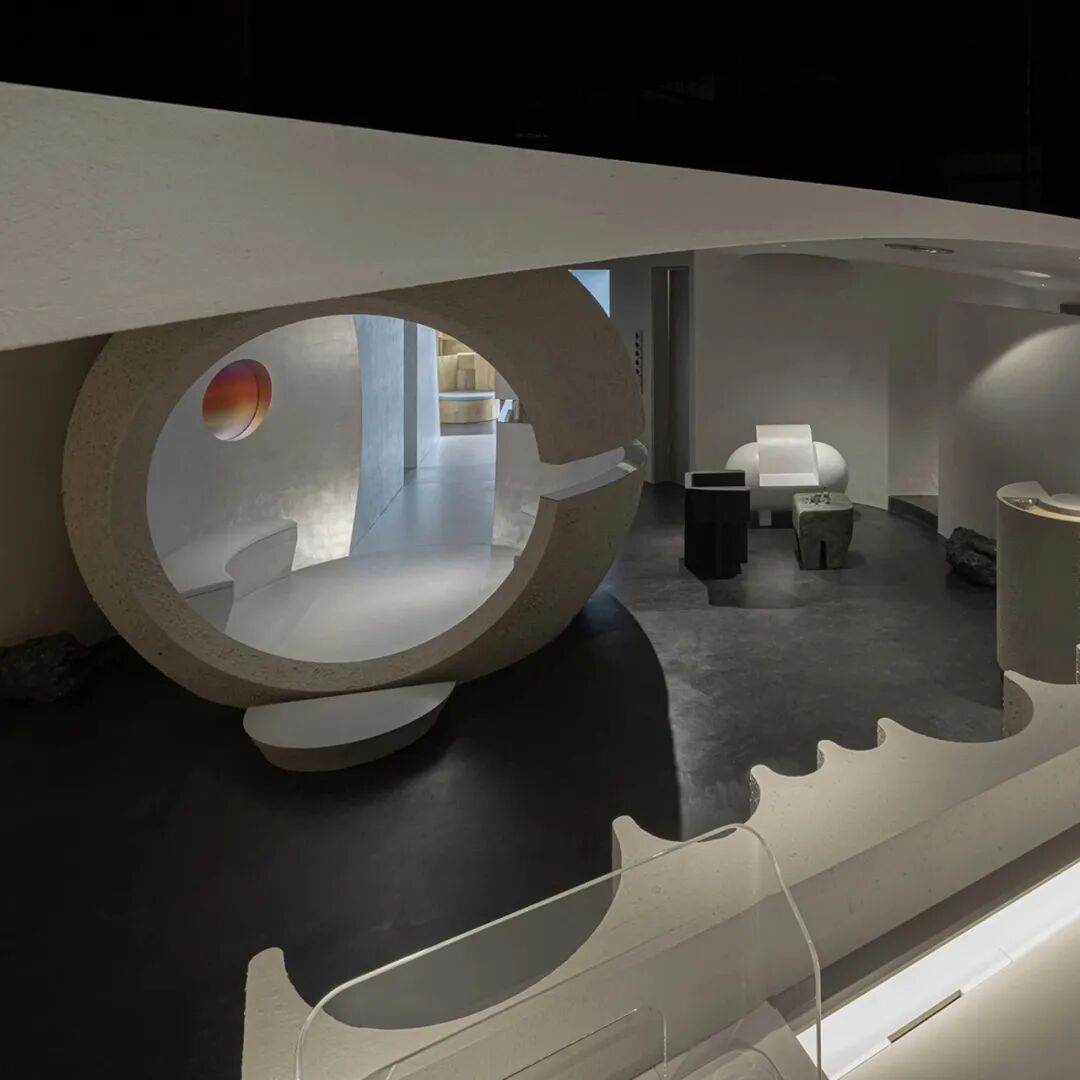 球形入口、有限的调色板和超凡脱俗的灯光,这个空间被 Lialawlab 的首席设计师邢丽娅比作一个“沙漠星球”。