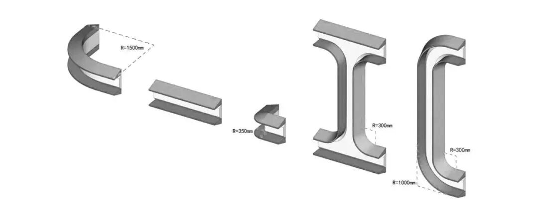 在实际施工中,将整体分解为多个主要的单元构件相互整合拼接,基本单元标准化,在工厂完成,现场施工只需连接节点,采用标准化构件并以现场调整弯弧节点误差的方式控制拼接效果。