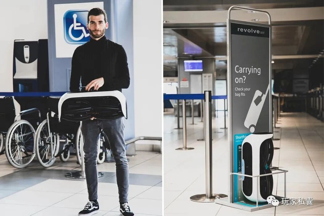 由前法拉利设计师Andrea Mocellin设计的更适合旅行的便携式轮椅,只需简单几步,就能缩到不足20L的拉杆箱大小,可轻松带上飞机放入头顶的行李舱中。他对折叠轮椅最大的贡献是发明了防穿刺的折叠轮胎,如同钓鱼爱好者熟悉的户外折叠椅一样,这使得Revolve Air比市面上主流的折叠轮椅缩小了6成体积。现在最大的障碍是产能,设计师表示,目前至少有12000名客户急需此产品,售价2200美元起。