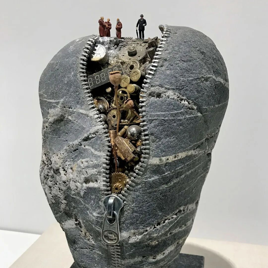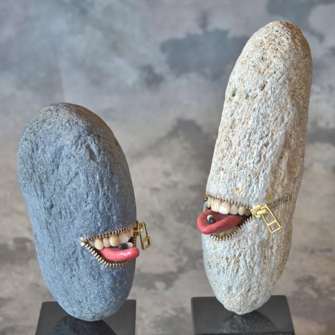 看到这个商品后,小绛立刻就联想起一位石雕艺术家伊藤博之,这些拉链牙齿岩石作品,就是模仿着他的作品制作而成,这位艺术家的作品以石雕为主,大致可以分为两类,一类是用石头仿制的实物作品,让人看到后几乎没办法通过视觉辨认它们的真假。另一类作品,就类似我们看到的拉链牙齿作品,这位石雕艺术家会在石头上雕刻拉链和其他事物,仿佛这些石头被一根拉链拉开了一样。