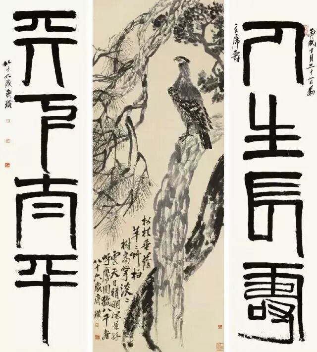 齐白石《松柏高立图· 篆书四言联》4.255亿