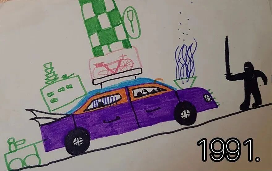 大约在9年前,他又重新拿起了铅笔,在拿到铅笔绘画的时候,他又找到小时候的快乐,这让他意识到画画就是自己一直想要做的事情。从那一刻开始,他就一直绘画到了今天,他最早的一幅汽车画作绘制于1991年,那一年他才只有6岁,到了2019年,过了整整28年后,他又重新画了这幅作品。