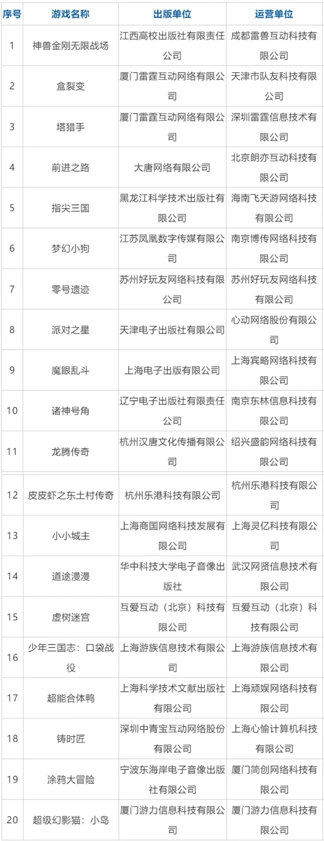 新一批版号名单共有45款游戏,包括此前就被媒体曝光的西山居的端游《剑网3缘起》、雷霆互动《塔猎手》、三七互娱《梦想大航海》、心动网络《派对之星》、创梦天地《小心火烛》、雷兽互动的《神兽金刚无限战场》等均在此列。