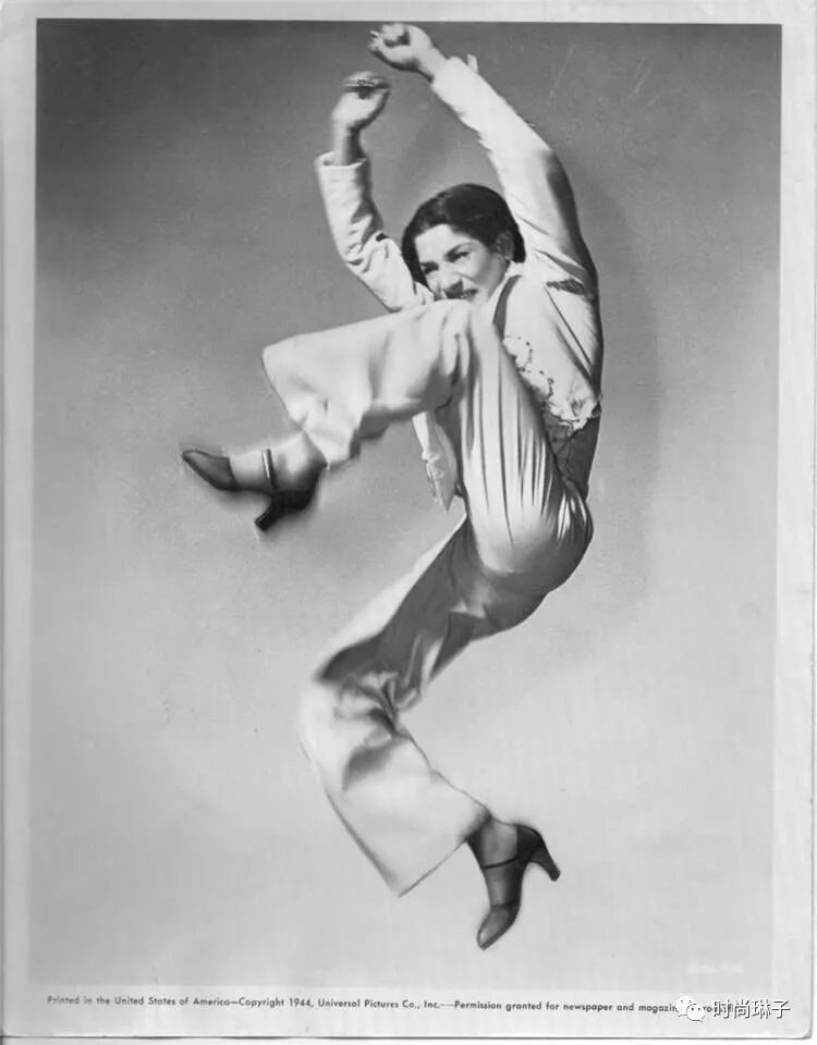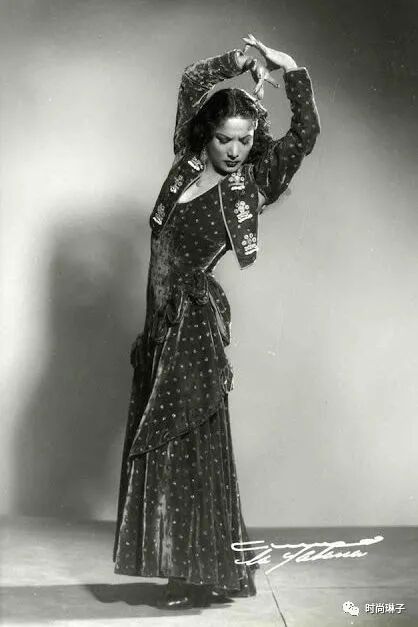 斗牛士短款夹克或背心搭配高腰长裤或裙装,以传奇弗拉门戈舞者卡门·阿玛雅Carmen Amaya的着装为参考,带帽檐的帽子使女性更多了几分英姿飒爽。