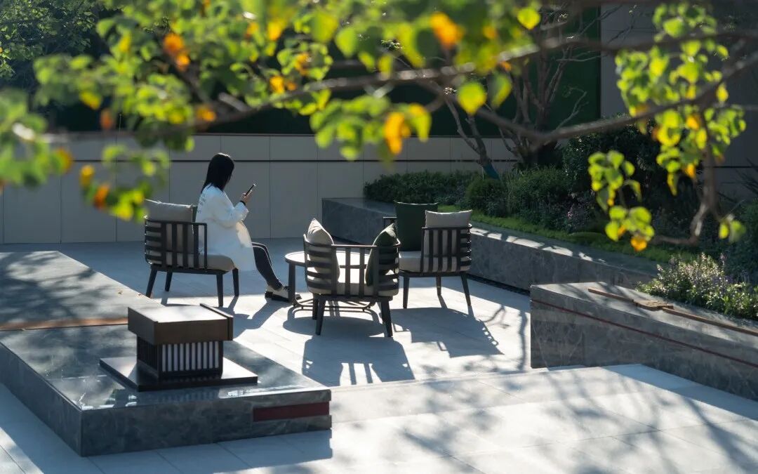 In the shade of a tree, stand next to the water bar. The water flowed downward. Listen to the sound of water and enjoy the scenery stone. Appreciate the flow and stillness, touch the hardness and softness, and feel the flow of time in nature. The minimalist oriental aesthetics is also the embodiment of nobility. The collision of color, texture and texture is also the essence of life.