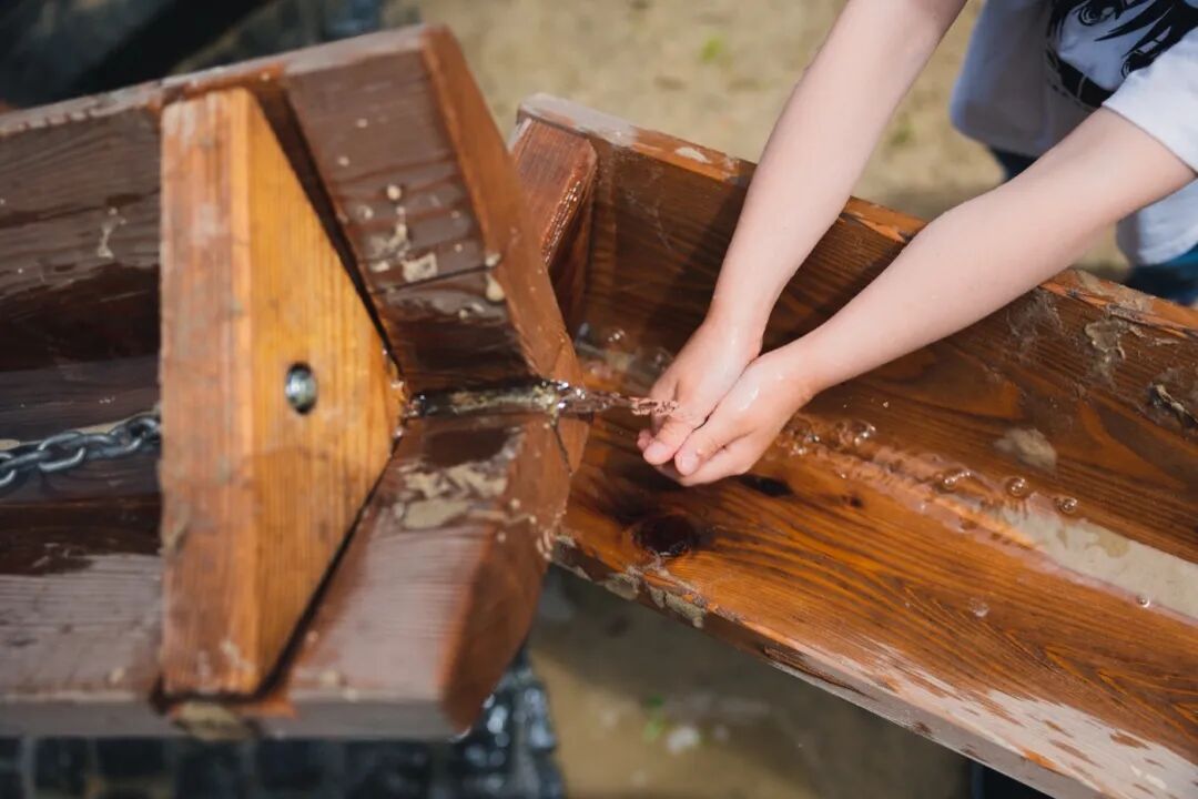The playground is made of natural materials which are resistant to temperature changes and are suitable for all weather conditions.