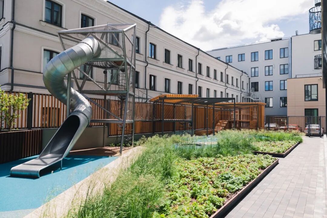 Here is one case study from the landscape bureau AFA. A multifunctional playground on a limited space in the center of Moscow.