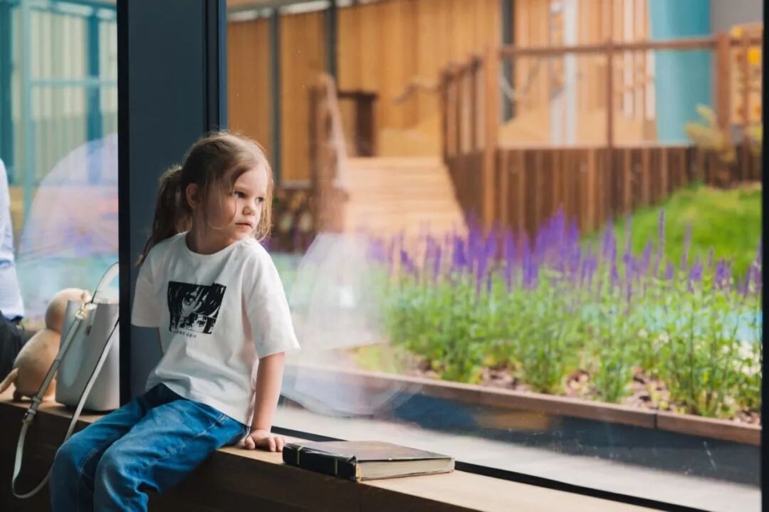 周围设置了各种组合的植物和花坛,不仅仅起到了装饰作用,也提供探索环境、学习植物的机会。