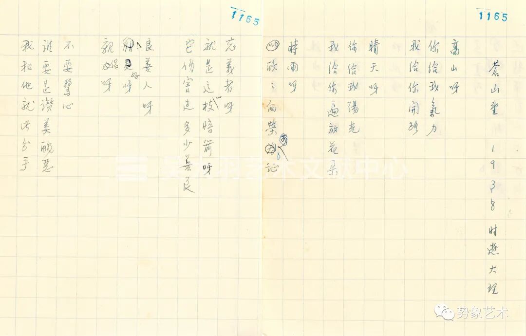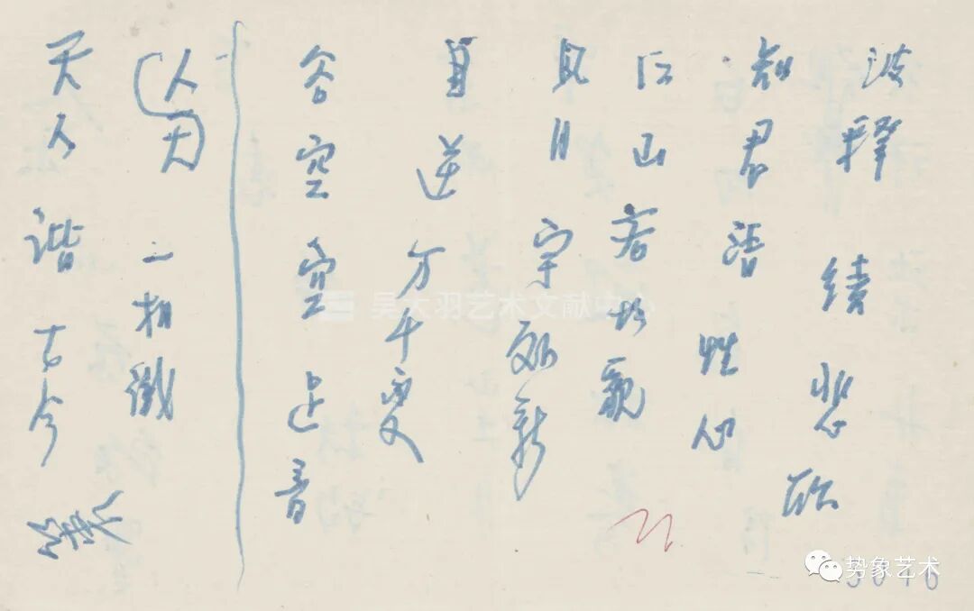 吴大羽有一首写于1950年代的诗,最后两句是“时间的积累就是我的见证,我本身是对历史的见证。”(吴大羽手稿257页)“时间”这一词汇在吴大羽遗留下来的手稿里被反复提及,如“时间无语,历史见情”,如“时间生命、时间尊严、时间喜悦、时间真理”“时间比金石更坚更硬”“时间长为空间留影,空间又惯替时间写照”。时间在吴大羽的思想里,就是真理。就像他曾经用过的名字“吴待”,一个“待”字映照了他一生对于时间的态度和时间的纠缠。在时间面前,他就像一个预言家和通灵者。
