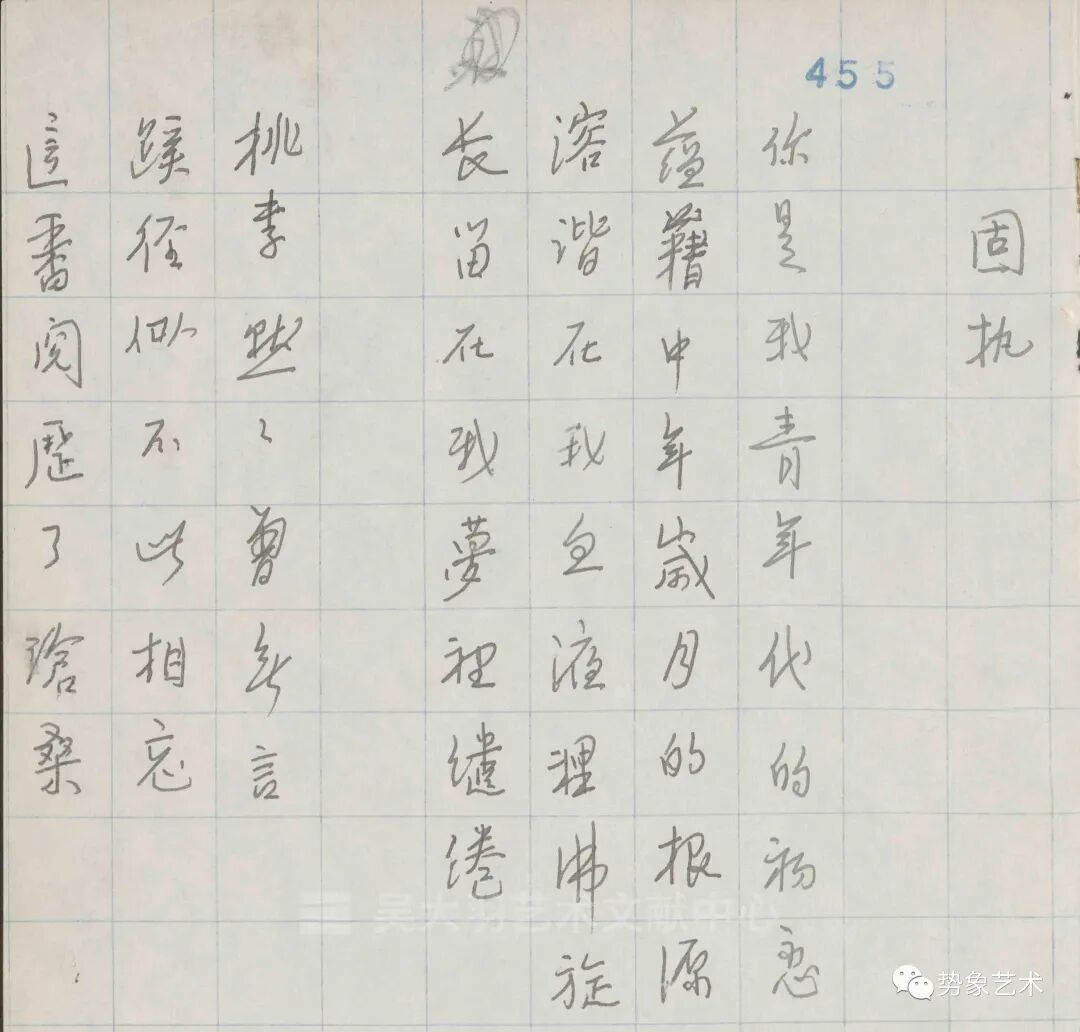 “8月31日。评选工作接近结束,上海的作品今天才到达,大家怀着迫切的心情下楼看刚开箱的作品。也许是师生的关系吧,我特别留心吴大羽先生的《色草》,色与色的跳跃,画与叶的拥抱,虚与实的穿插,小小画图间岂容苍茫宇宙,作者云游何处?尊敬的老师八十岁了吧!多年不见,身体更衰老了吧!然而心脏和脉搏的跳动依然如此强烈,我深深感到欣喜,似乎又返回了四十年前的西湖艺苑!”