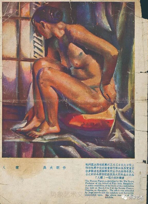 吴大羽,《窗前裸妇(人体)》,布面油彩,约3米高×2米宽,1928年(原作已佚)