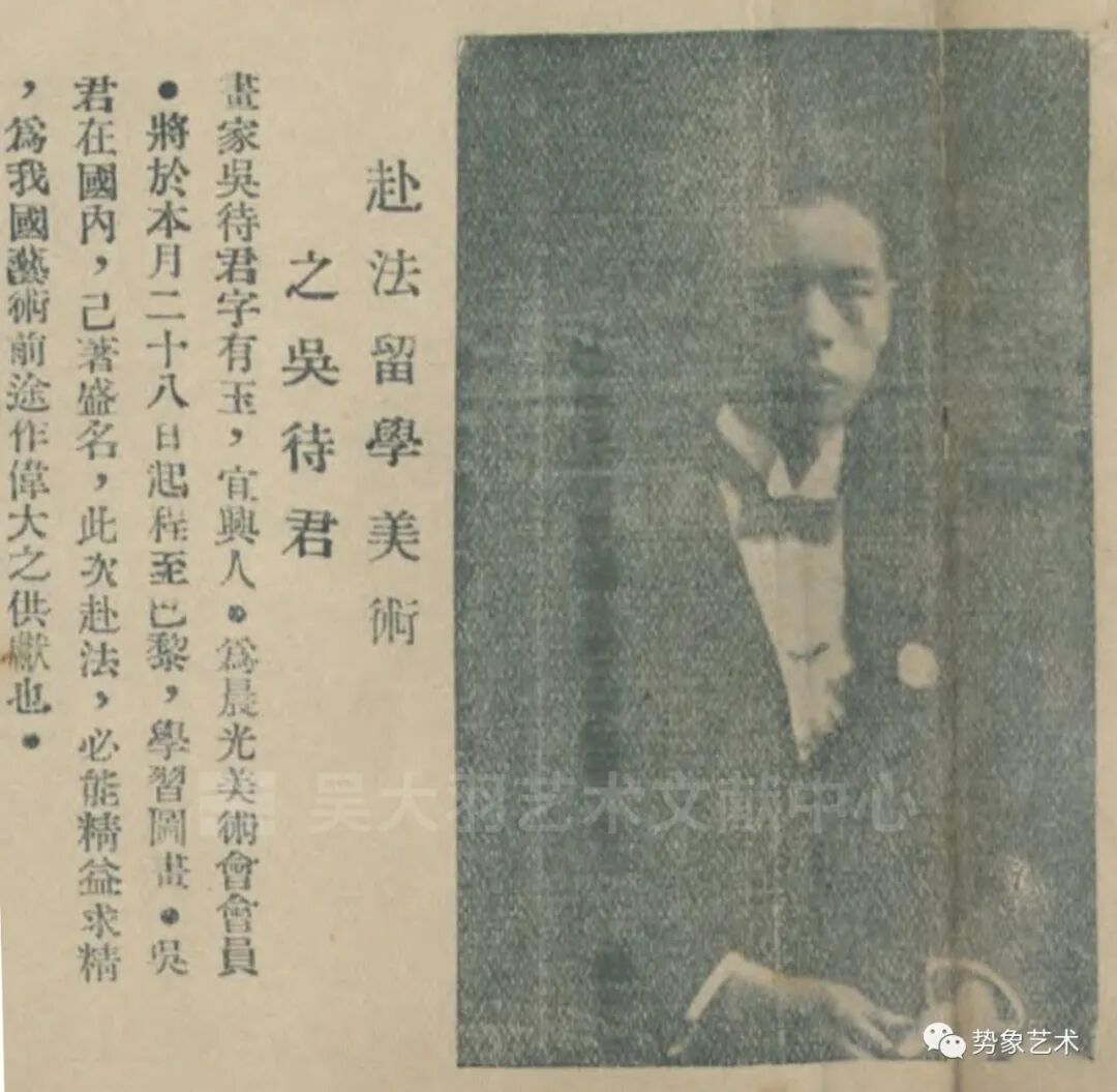 《赴法留学美术之吴待君》,《时代图画周刊》1923年9月24日