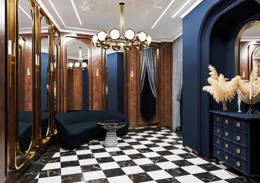 人们总是习惯于把宝石色调与财富和庄严联系在一起。红色、绿色、海军蓝或紫色的深色调既可以作为背景,也可以在家具中用作装饰。这些丰富的色调营造出一种既怀旧又现代的喜怒无常的氛围,颜色与深色木板、浅色天然石材、金属装饰和几何瓷砖地板并列。
