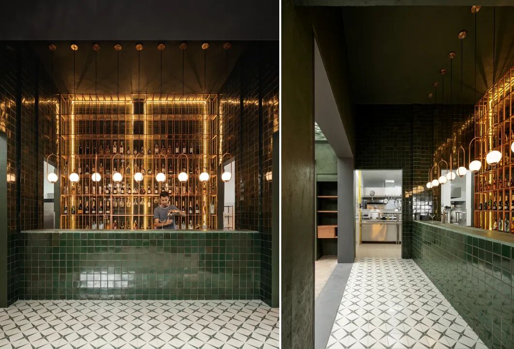 装饰艺术是发表声明的缩影,而照明可能是其中的重要组成部分,具有时尚或几何形状的照明器可以轻松修饰简单的空间,这体现在墨西哥莫雷利亚的圣马特餐厅酒吧的设计中,连接在长方形型材上的球形灯悬挂在吧台上方,设置还包括具有相同暖色调的嵌入式照明以产生光晕效果。