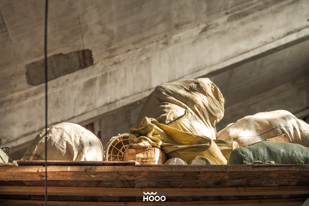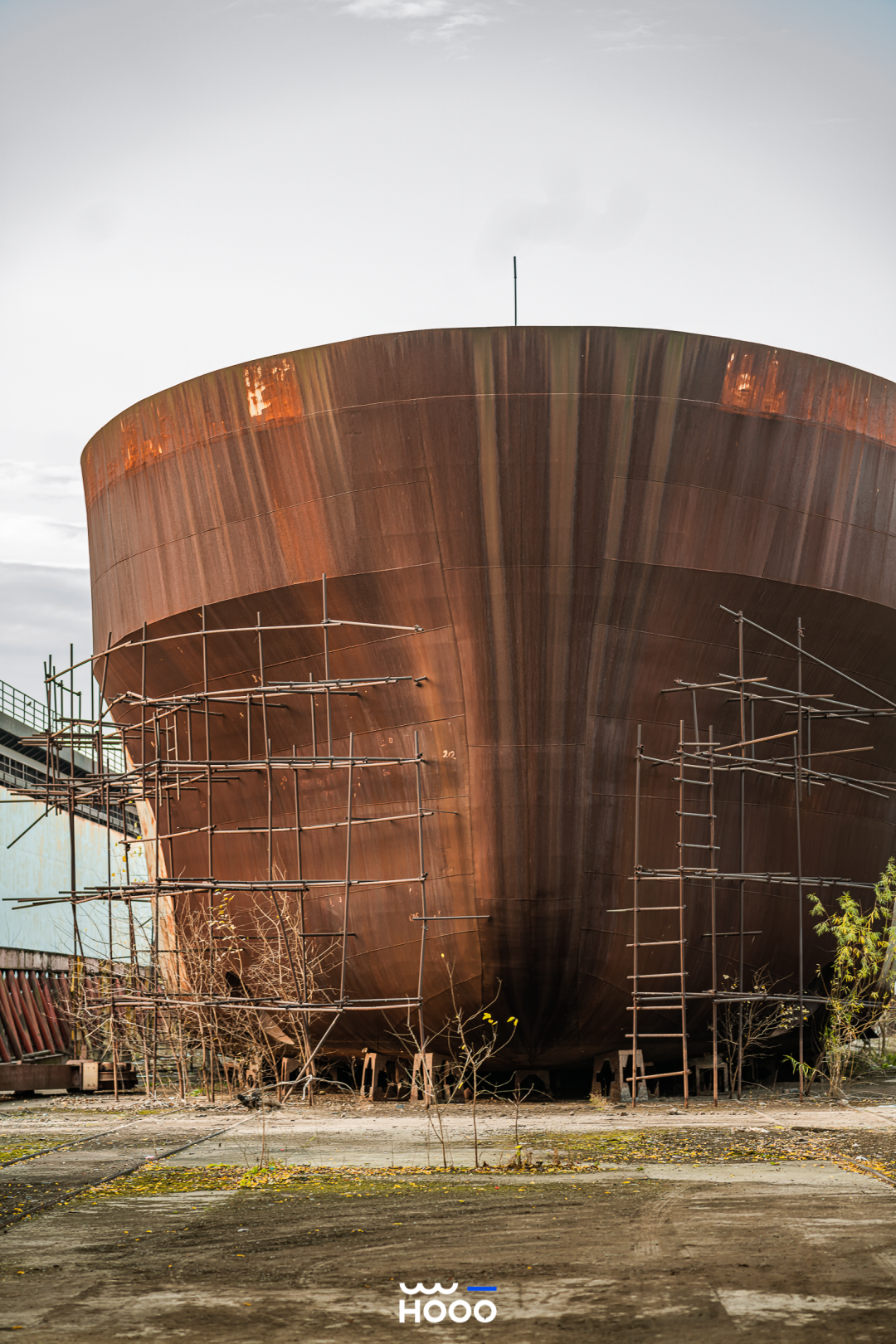 ☉船体一旁的“华夏造船”大字