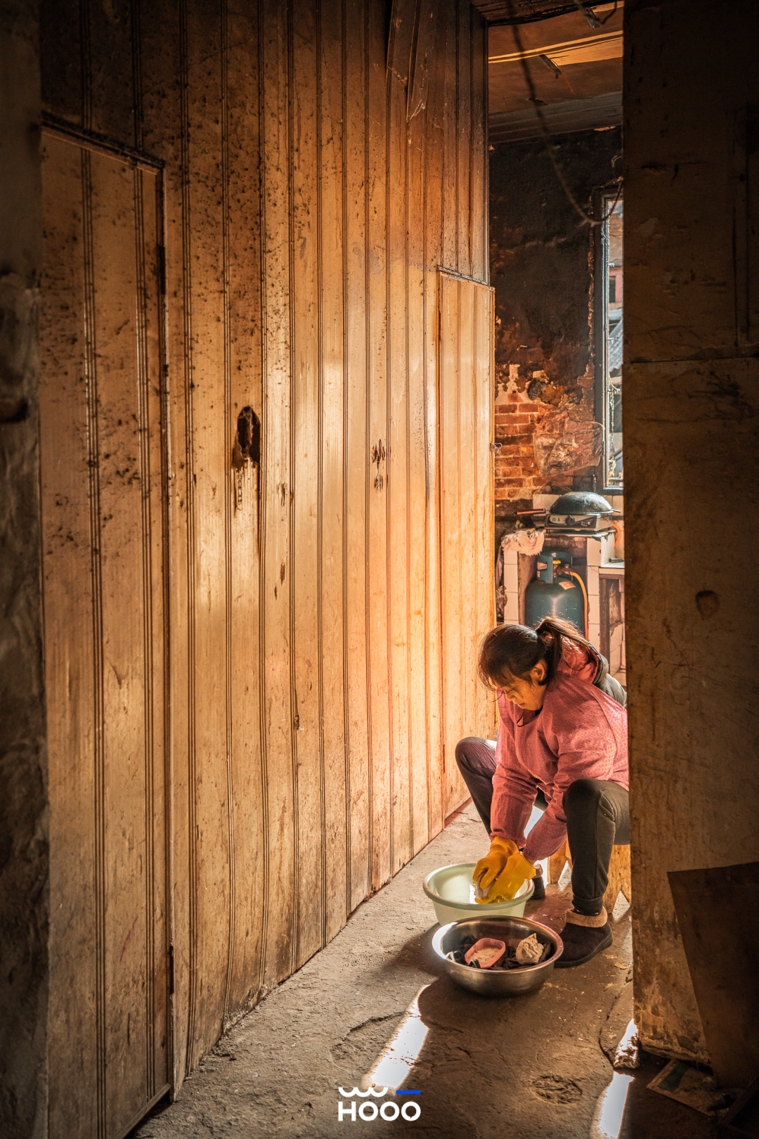 大姐俯身搓揉衣服