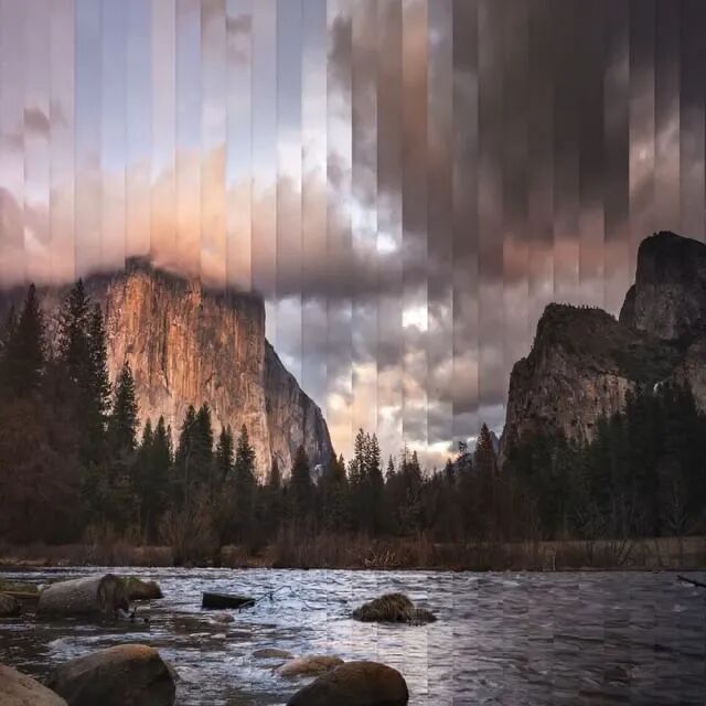 在这里先跟大家科普一下什么是时间切片,通俗一点讲,它指的不是一张照片,而是同一地点众多时刻共同组合成的一张照片,当一张照片每间隔几秒或者几分钟的时间就被偏移一点,经过从早到晚地偏移,最终数以千计的渐变的画面,被组合成一张照片,这就是时间切片。