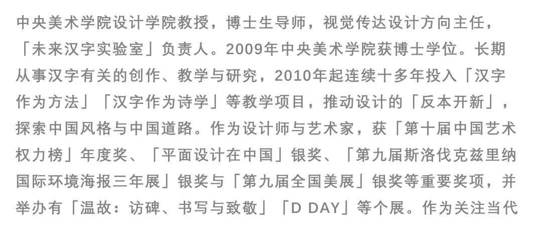 人类一直都在尝试触摸未来,并通过实际行动描绘未来。在时间长河中,“未来”也仅仅被归纳为一个“点”,在这之前是由无数“过往”和“现在”聚合而成的时间之流,是建立未知和已知的思辨之旅。在广义学科交叉驱动思维模式和研究范式的创新背景下,鲁迅美术学院聚焦当下具有影响力的艺术先锋,挖掘更具号召力与感召度的设计新锐,在思辨、证悟、觉知中为艺术设计的社会价值带来更具开放性的多元响应。30位青年艺术新锐是来自于著名院校的教育者、研究者,更是行业内的实践者,其共性皆是开局布新,探寻于不同维度贡献文化价值力,在新科技革命与产业变革重构人类生活方式的大时代下,在不确定性中寻找并把握具有本质意义的确定性。构建根植于民族文化之艺术本体、元认知、范式变革等前瞻性思想体系,以回应国家战略、未来方略、数字新生。