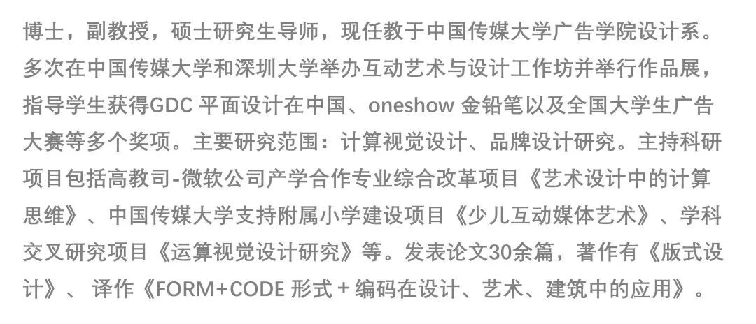 论坛邀请的30位青年艺术新锐均是来自国内外著名院校的教育者、研究者,以及行业内的实践者。论坛以数字媒体艺术为主线,内容涵盖视觉形式语言创新、艺科融合、新媒体艺术、数据艺术、信息设计、叙事空间、数字广告、融媒体IP、元宇宙、潮流酷玩、音乐疗愈等多维度专业领域展开。在设计学边界不断被打破、面向变革的当下,尝试通过线上论坛建立青年创新社区,发掘在物理空间中被认为“不可能的”未来,这种“不可能”将超越艺术和设计人的已有认知,建立一个更为多元、智慧创新、聚焦内容的分享体验场。