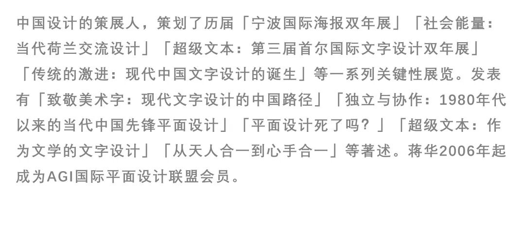 杨超立足国际主义风格,从视觉传达设计方向提出观点:设计师应该将本土元素与国际风格融合,促使本土文化走向世界,并强调将设计创作进行反哺理论研究。传统文化底蕴深厚,较难用设计将文化底蕴表达精准完善,并向外迅速传播。商业化的视觉设计可以优先考虑识别性,让受众产生兴趣,从而达到传播文化的目的。同时作为设计师,设计本身不是一味迎合甲方需求,或迎合一种形式,更重要的是培养设计师的个人风格,提升自身的竞争力。