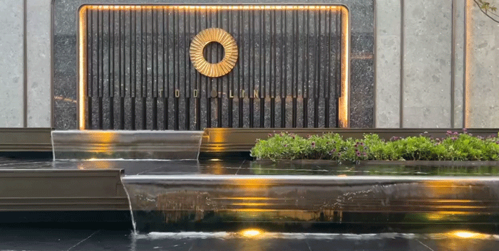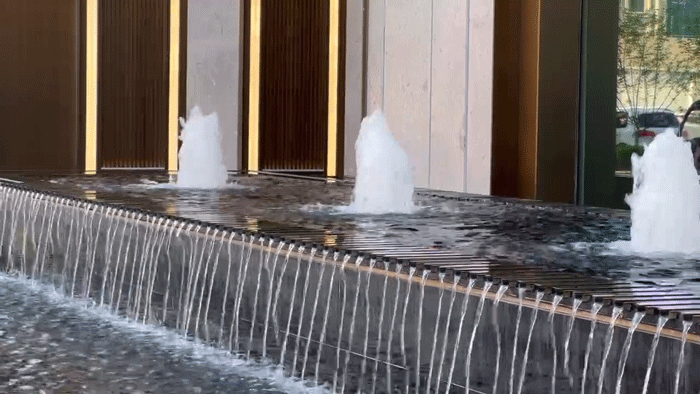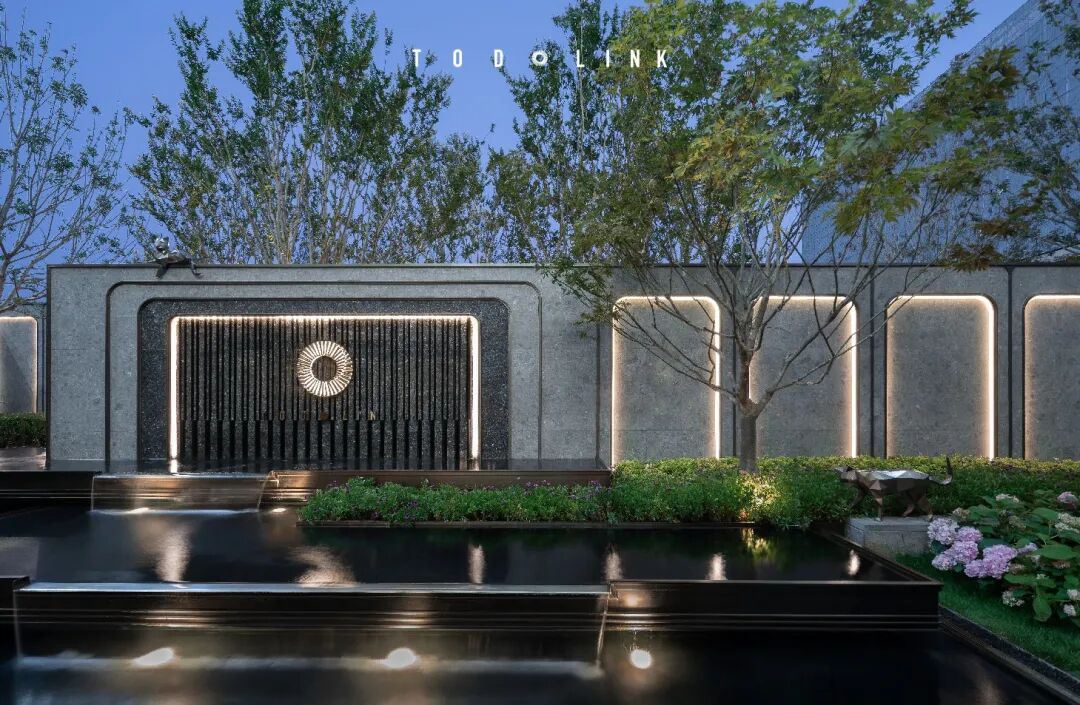 高级感较强的灰色石材搭配金属格栅形成的的照壁