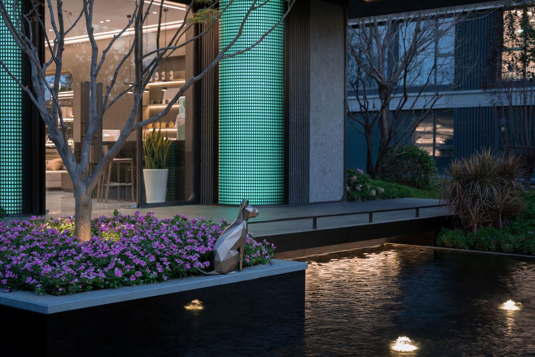 剔透的玻璃幕墙给予建筑与镜面水景虚实互动