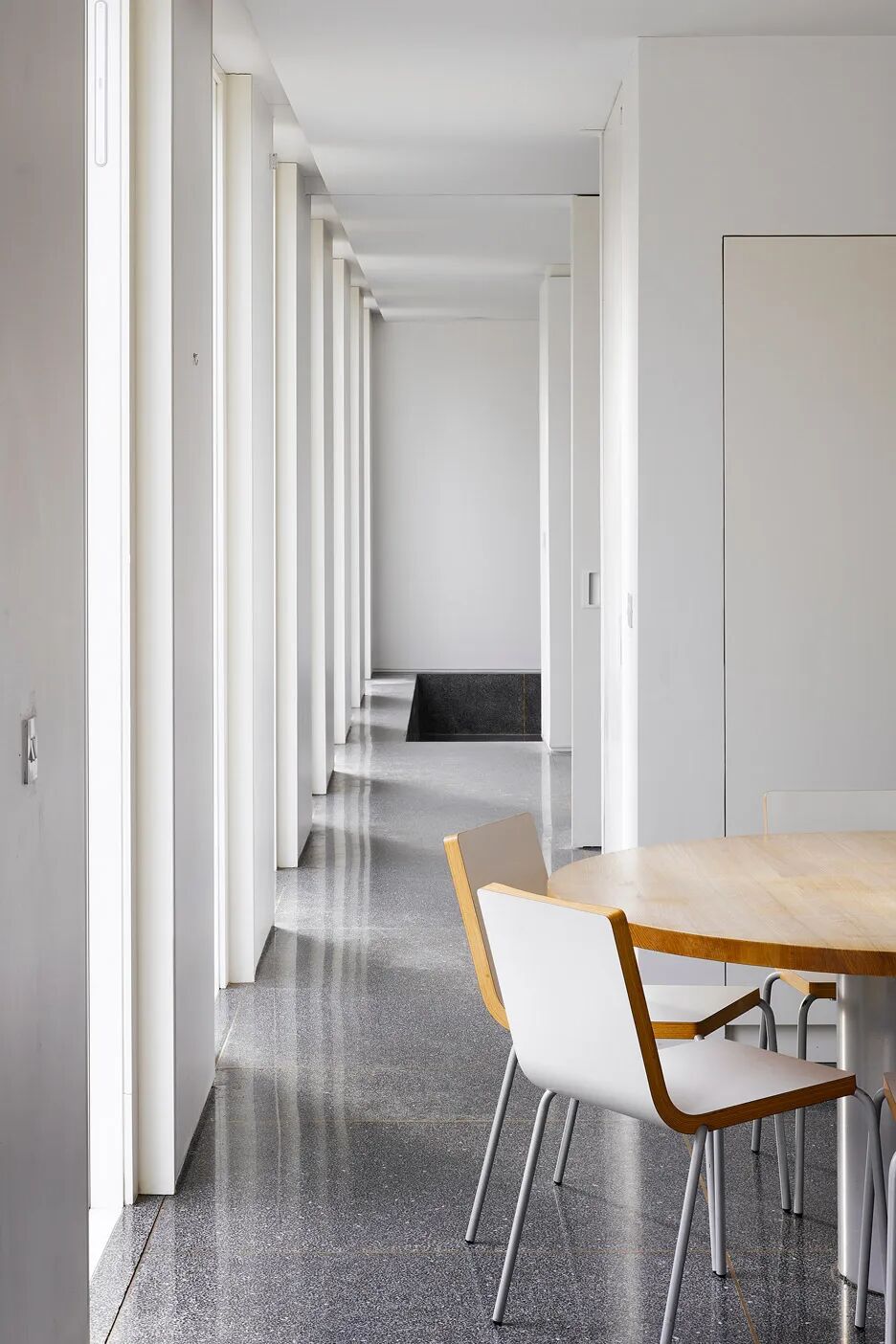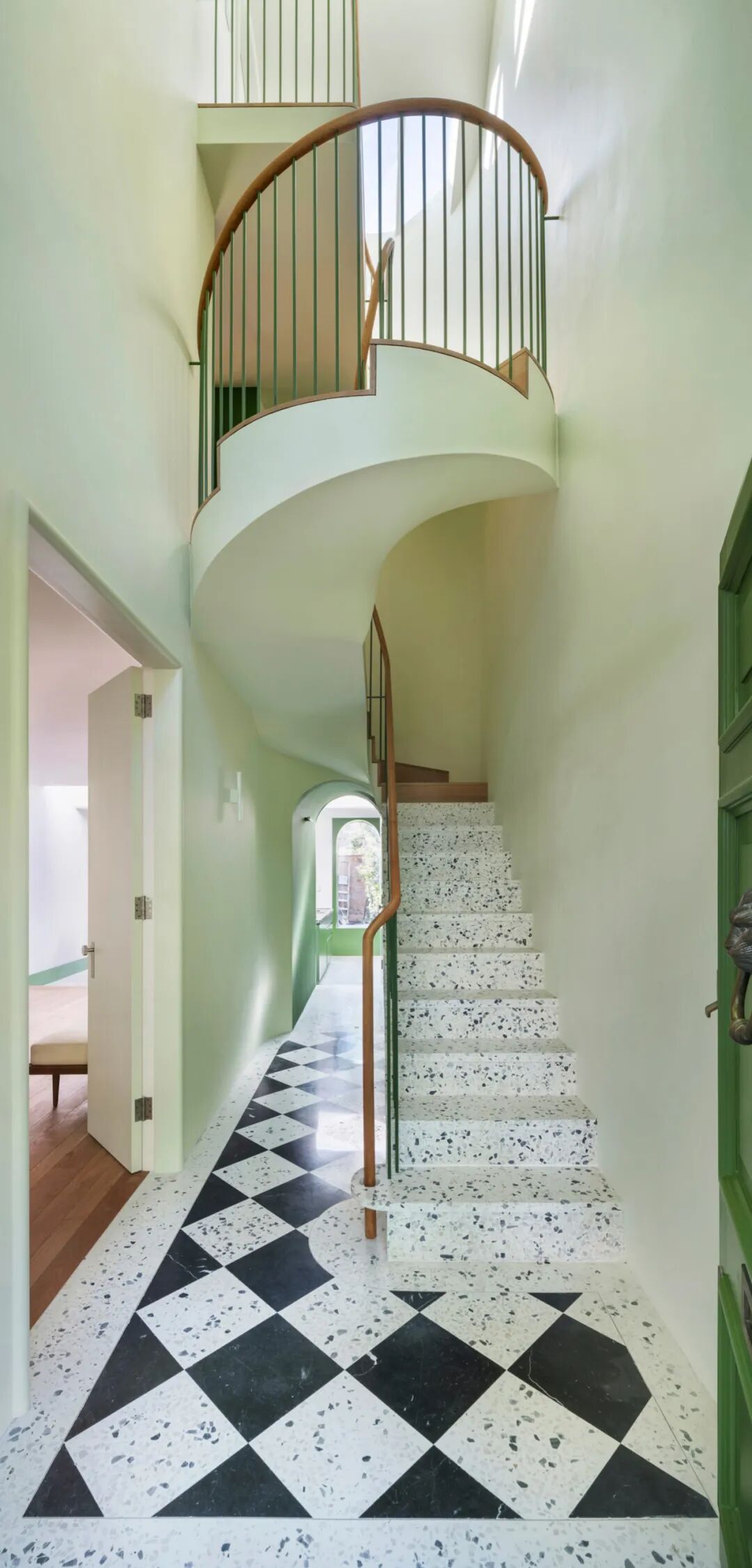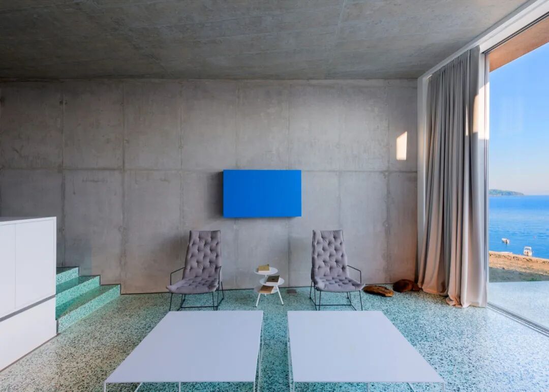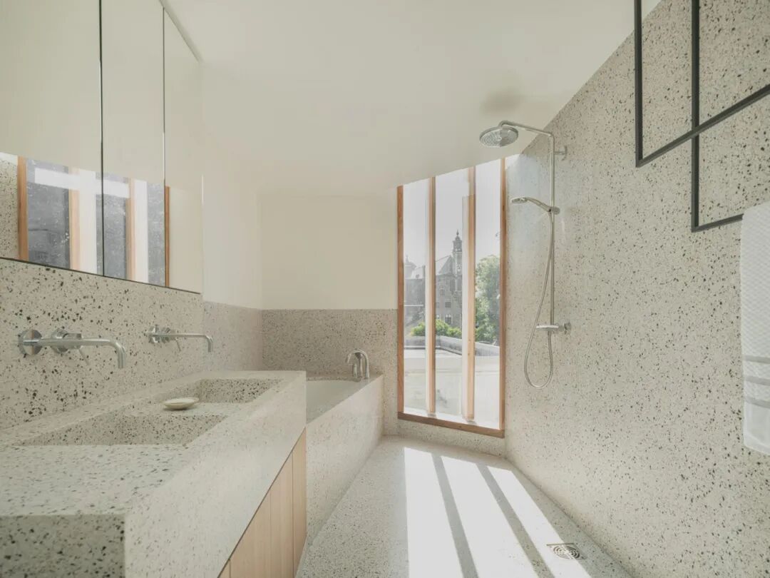 本期 Dezeen 精选了多种色调和风格的水磨石地板铺设于客厅、厨房、浴室、走廊和楼梯的案例。
