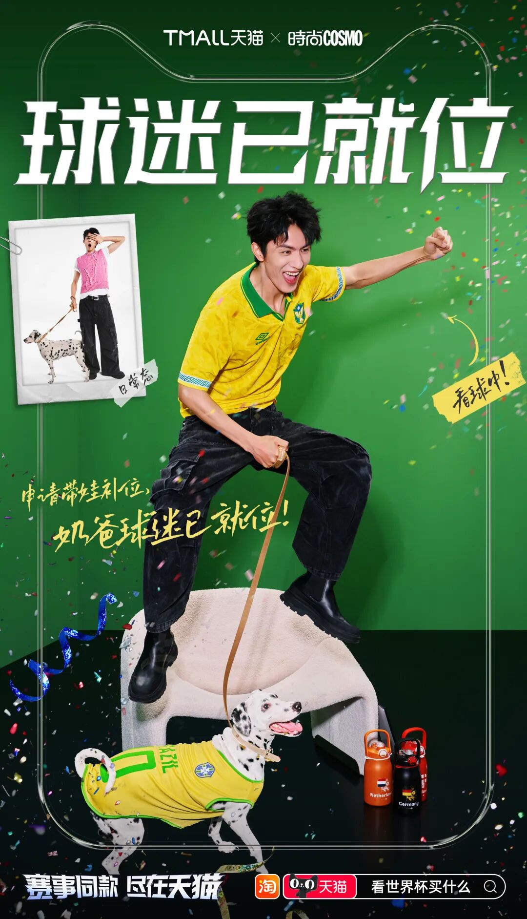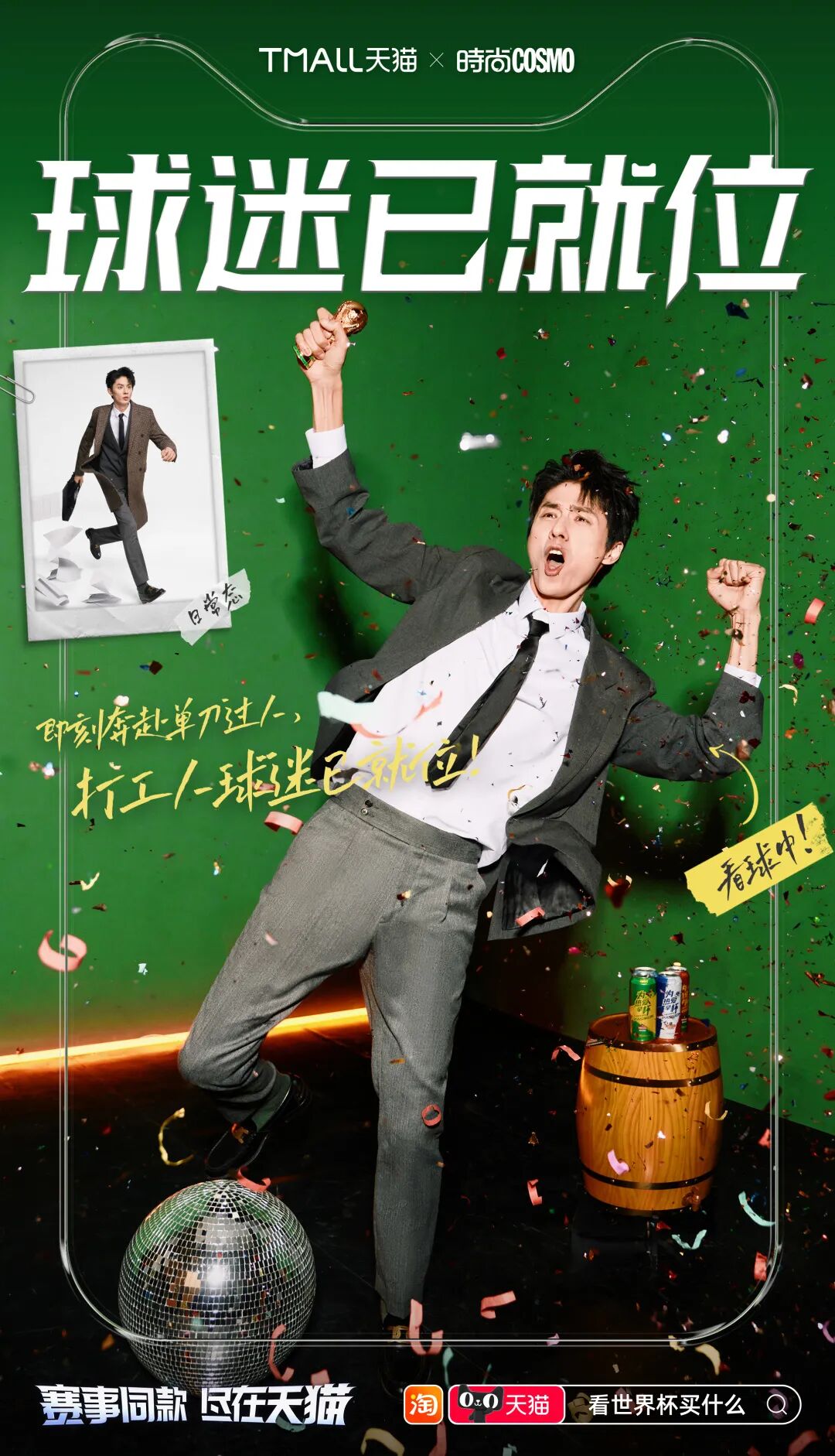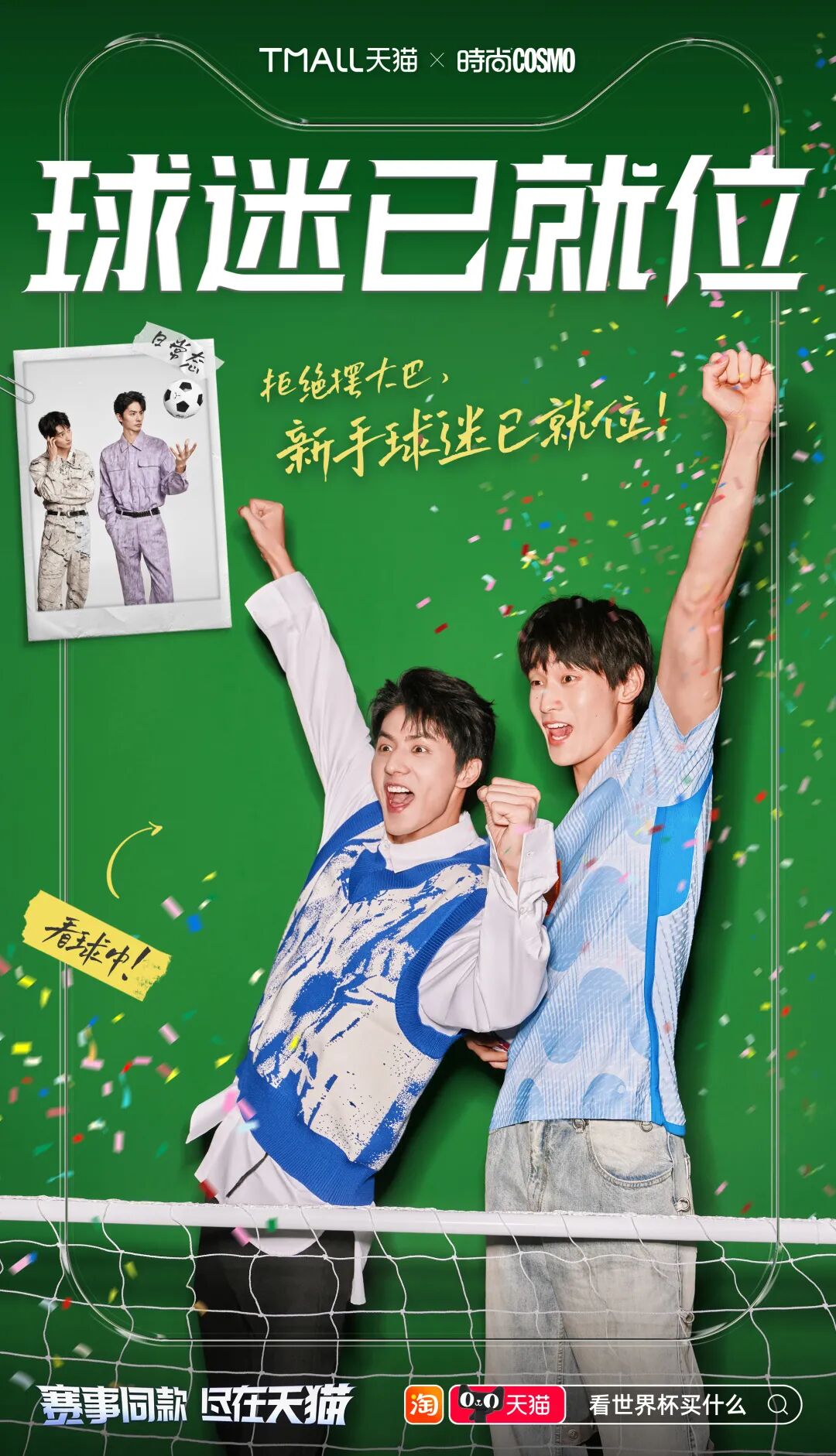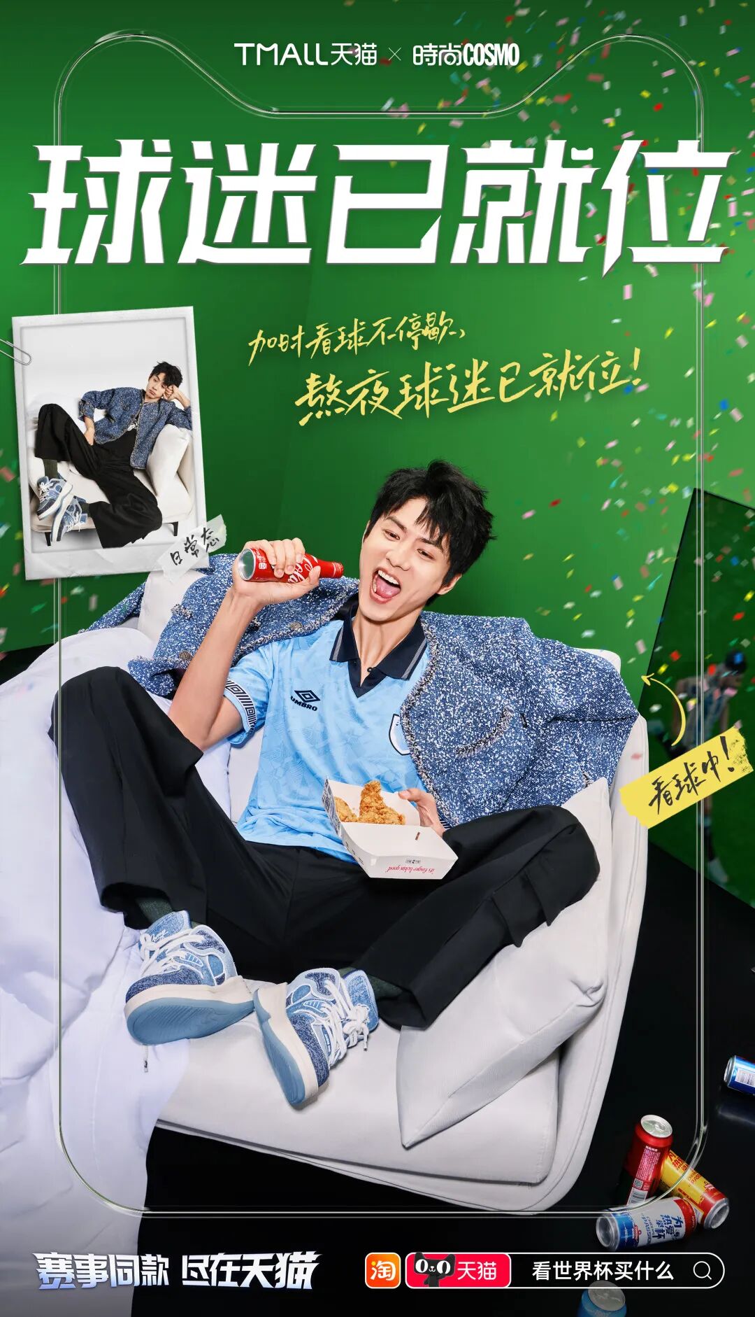 天猫推出了官方的球迷「造型」穿搭趋势的官方指引。联动时尚COSMO,发布时尚大片「球迷已就位」,以球迷属性穿搭为主题拍出大片质感的海报,引领世界杯穿搭趋势。