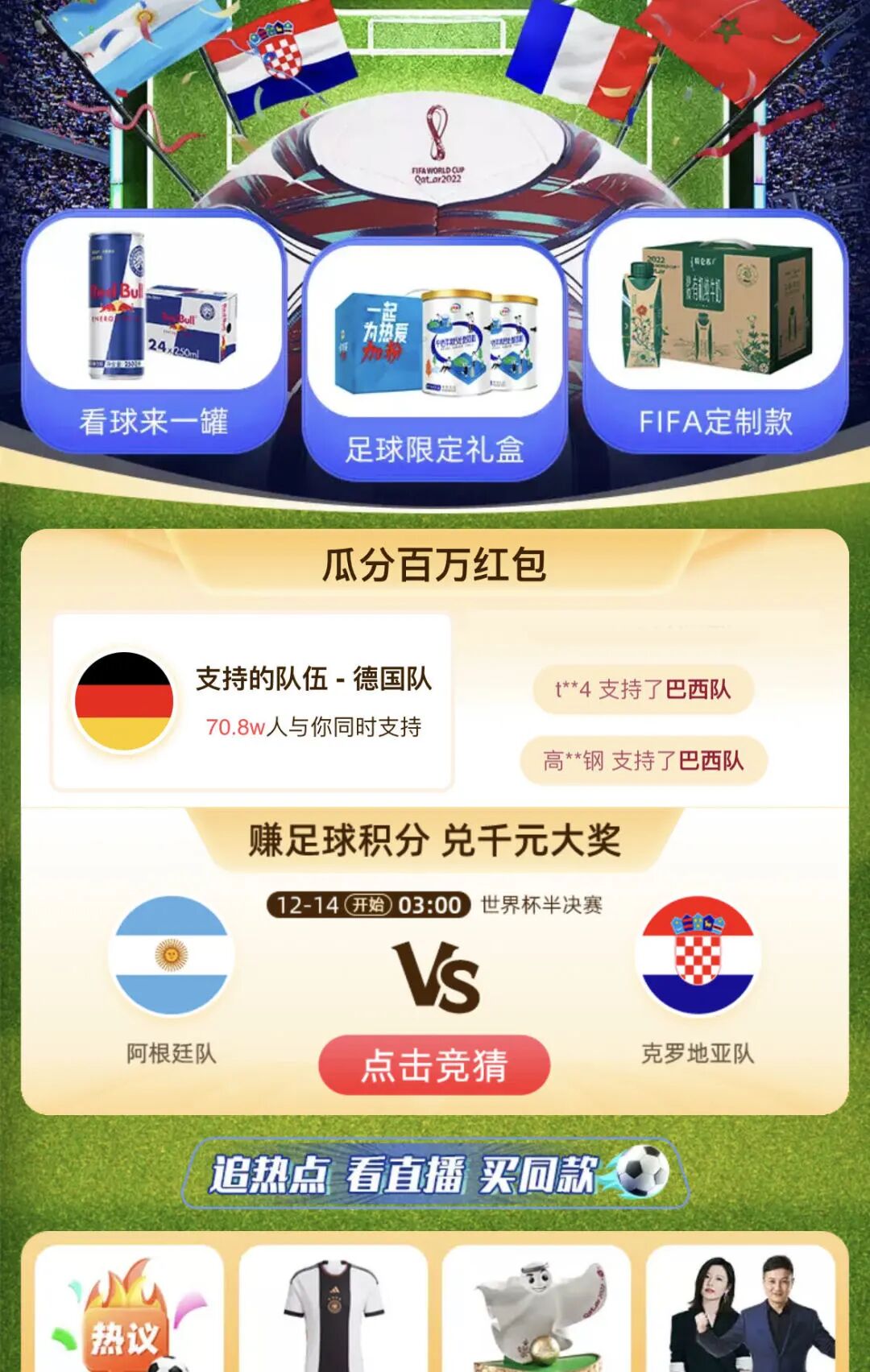 「选战队,猜胜负,买周边」,电商价值场域的构建,为用户提供了一种参与世界杯的全新方式。