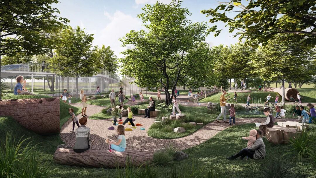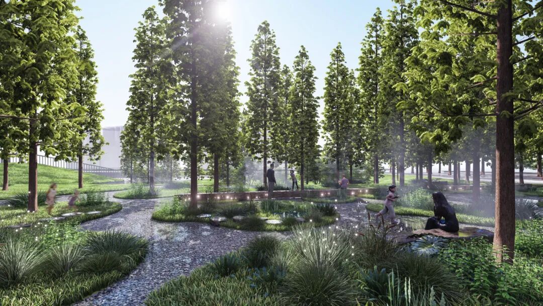 用一处“城市丛林”,让孩子们在草坪上奔跑、嬉笑、打闹,与自然互动;人们也来到这里,遛狗、交谈,从陌生到熟悉,传递生活的快乐与温度。