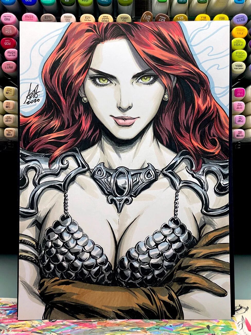 除了数字绘画,Stanley Lau同样十分擅长传统手绘的创作方式,他用马克笔技法画出了手绘板的效果。