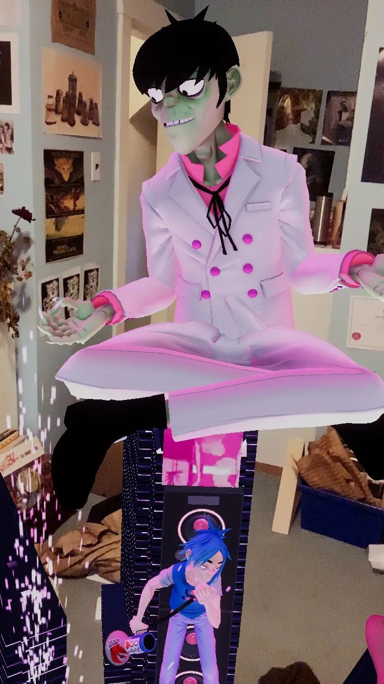 如何开启这一虚拟会场?只需要到Gorillaz专属活动页网站下载应用程序,便能通过手机屏幕打开一个叠加在现实之上的AR空间。