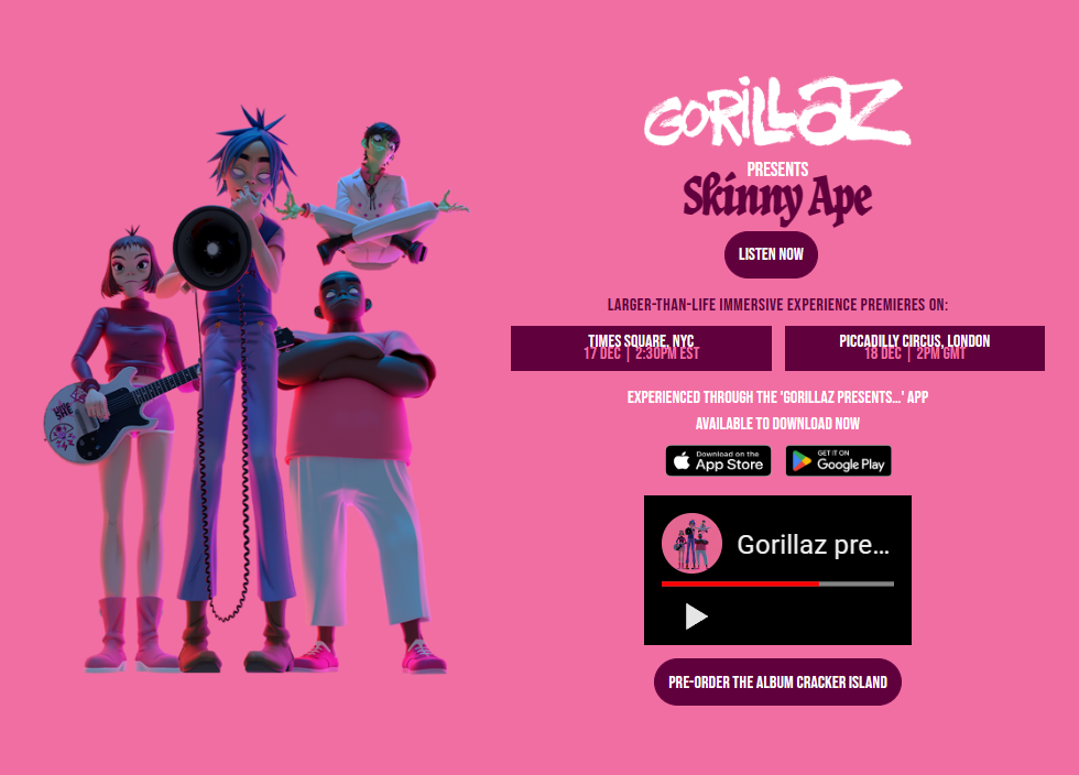 十二月初,Gorillaz分享了新单《Skinny Ape》,并惊喜宣布:将于美东时间12月17日和格林威治时间12月18日在纽约时代广场和伦敦皮卡迪利广场进行“现场表演”!