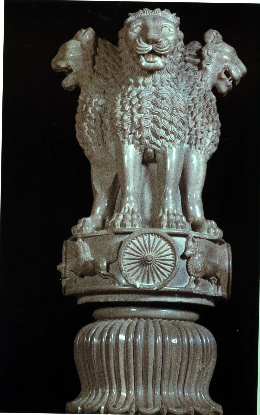 阿育王弘法后,将这里视为最重要的佛教圣地,特意在这里立了一根阿育王柱来标识。这根阿育王柱与一般柱头上只有一只兽的柱不同,在莲花形的柱顶上立有四只雄狮,它们背向而立,足下踏有转轮,光亮可鉴。现在柱已断为几截,但柱头还保留在鹿野苑旁的萨尔纳特博物馆内,巨大而完好的四狮柱头已经成为印度国徽图案,在印度的钱币上都可以见到。