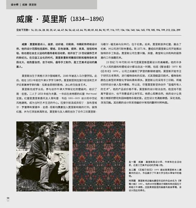 干货2023-09-16 世界花纹与图案大典 花纹图案可动可静,或自由洒脱,或布局严谨,色彩与纹理的碰撞谱写出视觉上的乐曲。 上及陶器上富有韵律感的花纹和洞穴墙壁上手工刻印的痕迹,下至最新的数码设计,从古至今,图案创作带给人的艺术享受都是装饰艺术内在的一部分。 图案无处不在,包含在建筑细节中,也留存于梭织与印花织物中,它是每个艺术家和设计师的原创表达,也是世界各地手工艺悠久的传承。 ▲ “樱花”,玻璃和青铜的蒂芙尼台灯,来自20世纪初期 图纹怡情。花头花瓣的排列,枝干藤蔓的舒展,还有贝壳上的螺旋纹路,花纹图案源于自然,也与我们的审美趣味有着千丝万缕的联系。 从某种深层角度来看,图案反映了我们是如何思考的。 人类本能地将所见所感提炼为某种连贯的叙述。从这个层面来说,人类需要厘清事物之间的关系,将独特而分散的元素聚零为整,发挥整体大于局部的效果,而花纹图案正好满足了人类的这种需求。 ▲ 莫里斯将这幅他最受欢迎的作品命名为《草莓小偷》(1883)。他的乡村别墅凯尔姆斯科特庄园位于英格兰牛津郡。庄园果菜园里的画眉鸟偷食草莓,该设计因此而得名 纵观历史,花纹图案的主题、配色和比例变化万千。 然而万变不离其宗的是,花纹图案的重复具有规律性,强烈的韵律感让平坦的表面充满了动感活力与空间深度。 花纹的重复可简可繁,可以是等距排列的圆点组成的网格,也可以是缜密的枝条设计,要费点功夫才梳理得出形态各异的元素。图纹的前景与背景交相辉映,布局之繁杂宛如一场舞蹈盛宴。 技术与工艺 花纹图案也与技术和工艺密不可分。 它本身是方法,也是目的。从可延展的潮湿黏土表面留下的痕迹可以推断出曾用工具压过,同样地,用橡皮筋或绳子作为防染工具形成了彩色同心环的图案,可以推断出运用了扎染工艺,编织的方法也可判断出某些几何设计的出处。 ▲ 《千鸟格 》( 2015),保罗· 史密斯。保罗· 史密斯为马哈拉姆设计的装饰织物。千鸟格源自古老的纺织物。千鸟格的经典版本是棋盘式镶嵌图案 工业革命和机械化到来以前,图案创作需要大量的劳力与时间:往往需要群体作业,经无数小时的缝纫最后制成棉被,其他印花、梭织或刺绣的纺织品也是如此,最精美绝伦的纺织品往往价格不菲。 随着机械化的到来,壁纸与纺织品的制造速度加快,数量猛增。这些进步帮助打开了市场,降低了价格,使得产品进入更多百姓家。 ▲ 《茛苕 》(1875 ),威廉· 莫里斯,当年十分流行的图案,柔和的渐变色是使用30块单独的印花模板制成的 从18世纪末到20世纪,英格兰兰开夏郡的工厂制造了数以百万码长的印花棉布,远销世界各地。 另一个重要的技术进步是丝网印刷,肇始于“二战”前,在战后广泛流行。 此后,数码化又为花纹图案的发展打开了新的局面,花纹图案出现在了五花八门的材料和产品上。 工艺美术运动 说到古往今来最具代表性的图案设计师,莫过于英国的纺织品设计师威廉·莫里斯,他也是诗人、小说家、翻译和社会主义活动家。 ▲ 威廉· 莫里斯 莫里斯是工艺美术运动的奠基人,留下了令人称羡的经典传世之作,影响了全世界数个世代的设计师。 1896年莫里斯离世之后,他的很多图案设计历经百年沧桑沿用至今,可谓是最家喻户晓的图案设计大师。 ▲ 雏菊是莫里斯最喜爱的图案之一,莫里斯公司出品了它的刺绣和印花版本。这幅壁纸畅销50年之久 莫里斯化自然为设计,从不刻意追求立体写实,而是忠于平面设计,总能将前景与背景巧妙搭配,令画面神采如生。 对现代人来说,莫里斯的图案设计或许繁复细密,甚至让人眼花缭乱,但他在很多方面都善于化繁为简。 真实地表现结构与材料是工艺美术运动的基础理念。莫里斯有一黄金法则:“不要在家里摆放任何不实用又不美观的东西。”这样说并不是反对装饰,而是呼吁装饰要运用得当。 ▲ 《萱草》(1897),沃尔特· 克兰。克兰是著名的艺术家和儿童读物插画家,他也设计了很多工艺美术运动风格的壁纸 莫里斯震惊于英国工厂产品的粗制滥造,有意识地拒绝批量生产而倡导手工制作,因而他的作品也价格不菲。 他使用雕版印刷制作壁画和面料,有一些直至今日依旧保留了雕版印刷的传统。 同样,他也拒绝19世纪中叶面世的刺眼的苯胺染料。他使用更为柔软、褪色更和谐一体的传统植物染料。因此,他研究古老的草药,用不同的配方做实验。 ▲ 《矢车菊》(1892),威廉· 莫里斯。这幅手工雕版印刷的壁纸图案,正是莫里斯认为适合平面造型的图案 20世纪20年代,英国设计师菲利斯·巴伦与多萝西·拉彻追随莫里斯的脚步,重新将雕版印刷与植物染料的传统发扬光大。 很多建筑师也踏入图案设计的领域。在建筑工作机会稀缺的时期,对于像沃伊齐和查尔斯·伦尼·麦金托什这样的英国建筑师来说,纺织品和壁纸设计成为他们重要的收入来源。 图案设计也是艺术家营生的重要副业。法国画家拉乌尔·杜菲设计了许多礼服和装饰织物,他常与法国里昂的顶级丝绸制造商比安基尼费里耶公司合作。出生于乌克兰的艺术家索尼娅·德劳内为自己的革新型服装设计面料。 ▲ 法国艺术家拉乌尔· 杜菲以其野兽派风格油画著称,他的画作轮廓鲜明,色彩明艳,主题积极生动。图为杜菲为法国丝绸制造商比安基尼费里耶公司设计的亚麻装饰织物,木版印刷 20世纪20年代和30