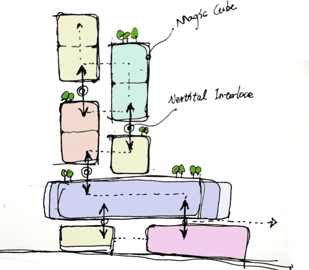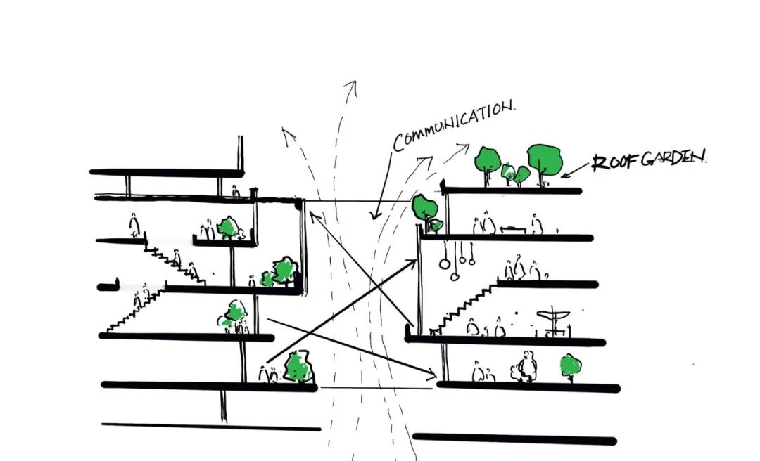 设计希望打造一个创新孵化的垂直产业聚落,兼顾中小型上下游企业形成产业集聚和大型企业的相关部门协同办公。