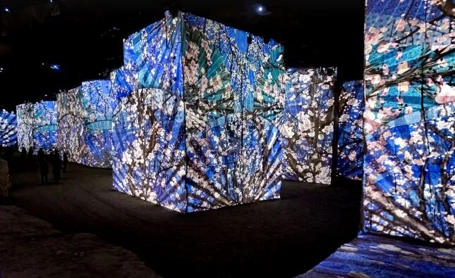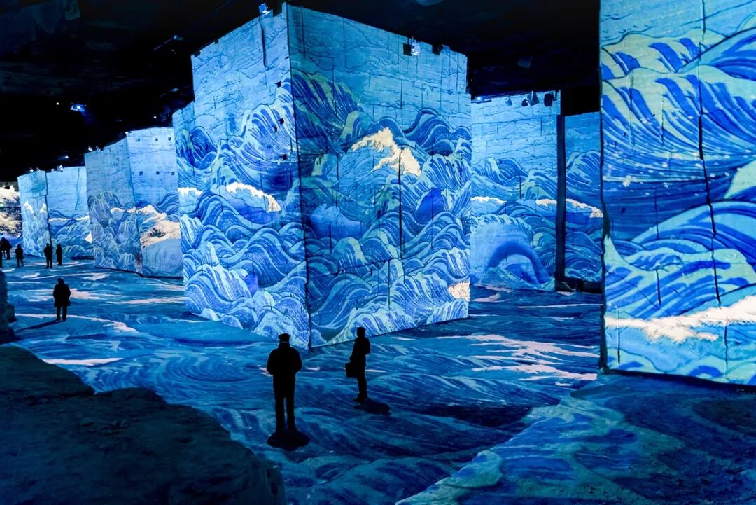 丹尼罗斯工作室设计了沉浸式数字展览:梦见日本,漂浮世界的映像(Dreamed JapanImages of the Floating World)展览,使用投影映射将过去和现在联系在一起,将在 1,100 平方米的空间内投射 12 个不同的视频序列,带领观众深入日本浮世绘大师沉思和音频之旅。今天恰逢世界旅游日,那就一起云游,去北斋的画里冲浪吧。