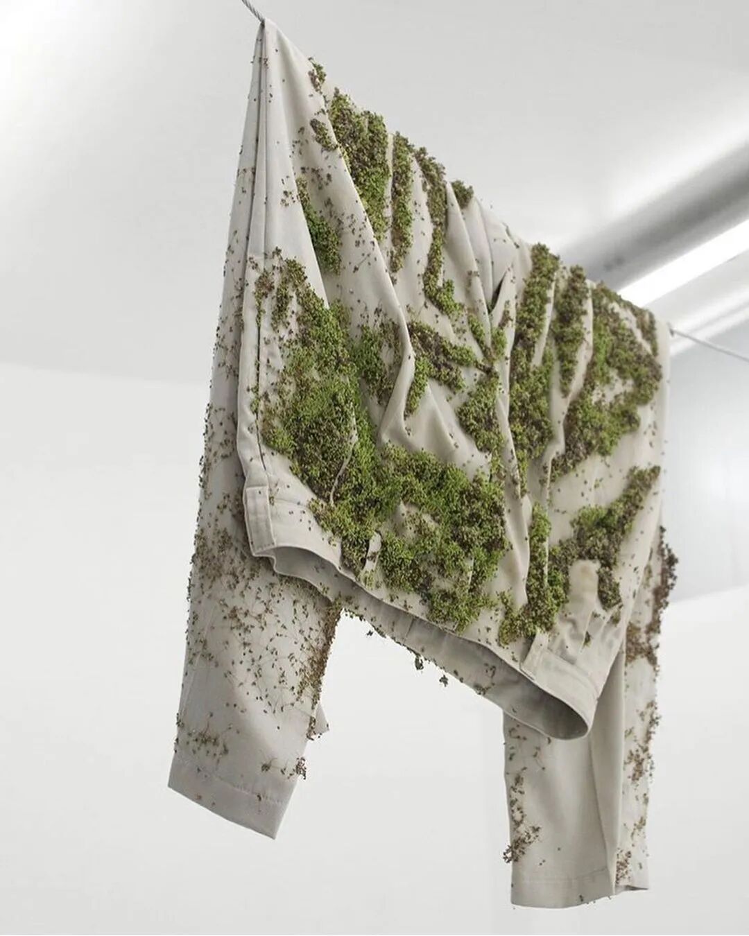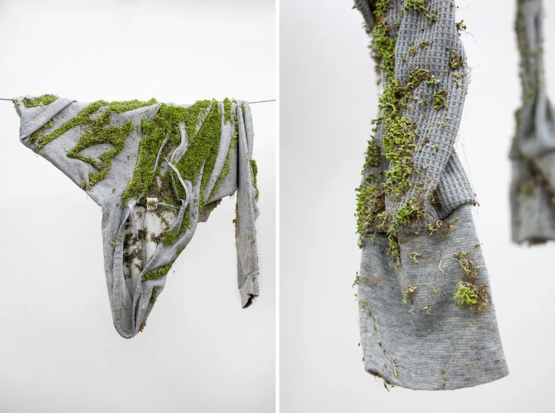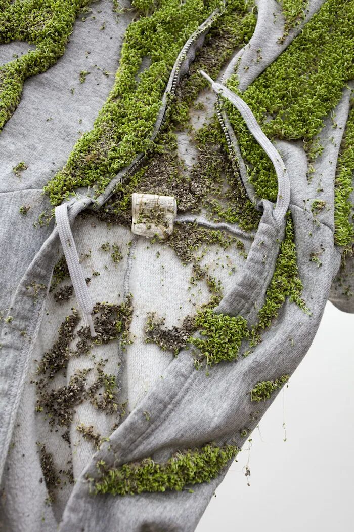你曾经熟悉的衣服长满了奇异芽,腐蚀了陌生的身体。艺术家Bea Fremderman 设想了一个不远的世界末日世界。她的日常物品和衣服的活体雕塑似乎突然被遗弃了,让大自然在人类离开时迅速接管。