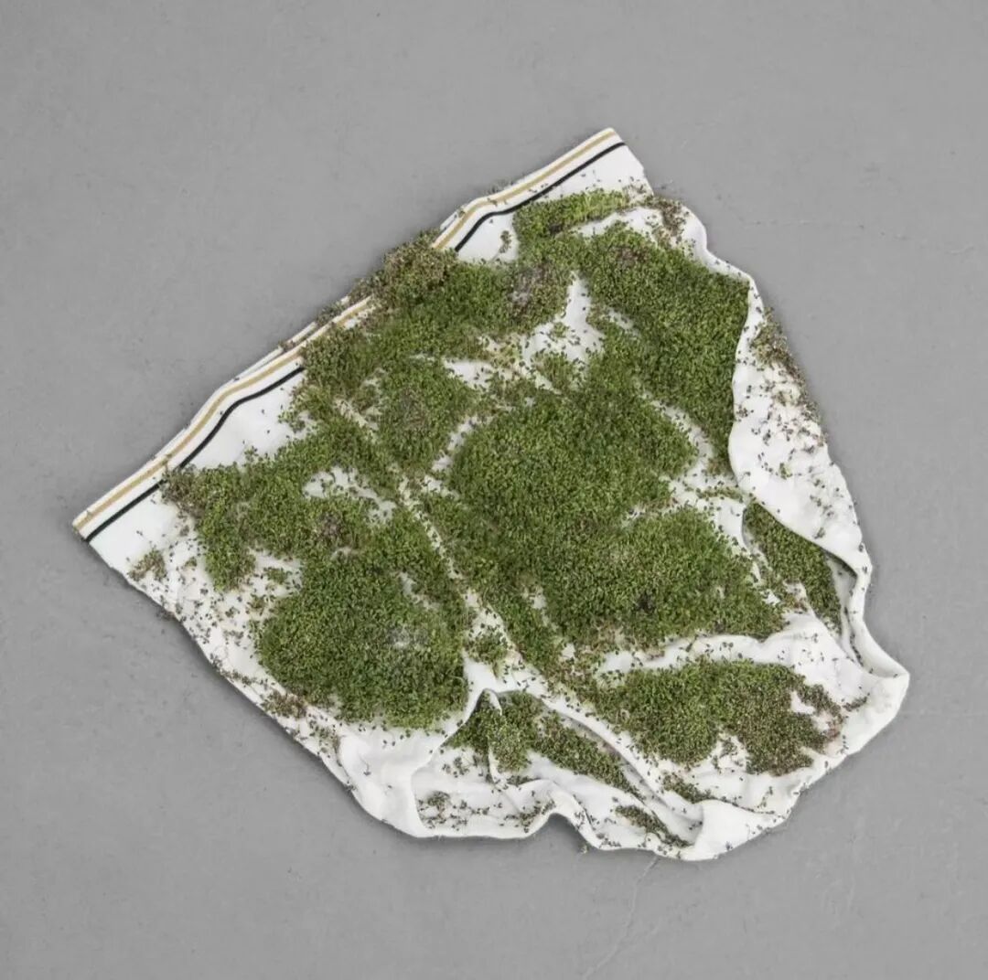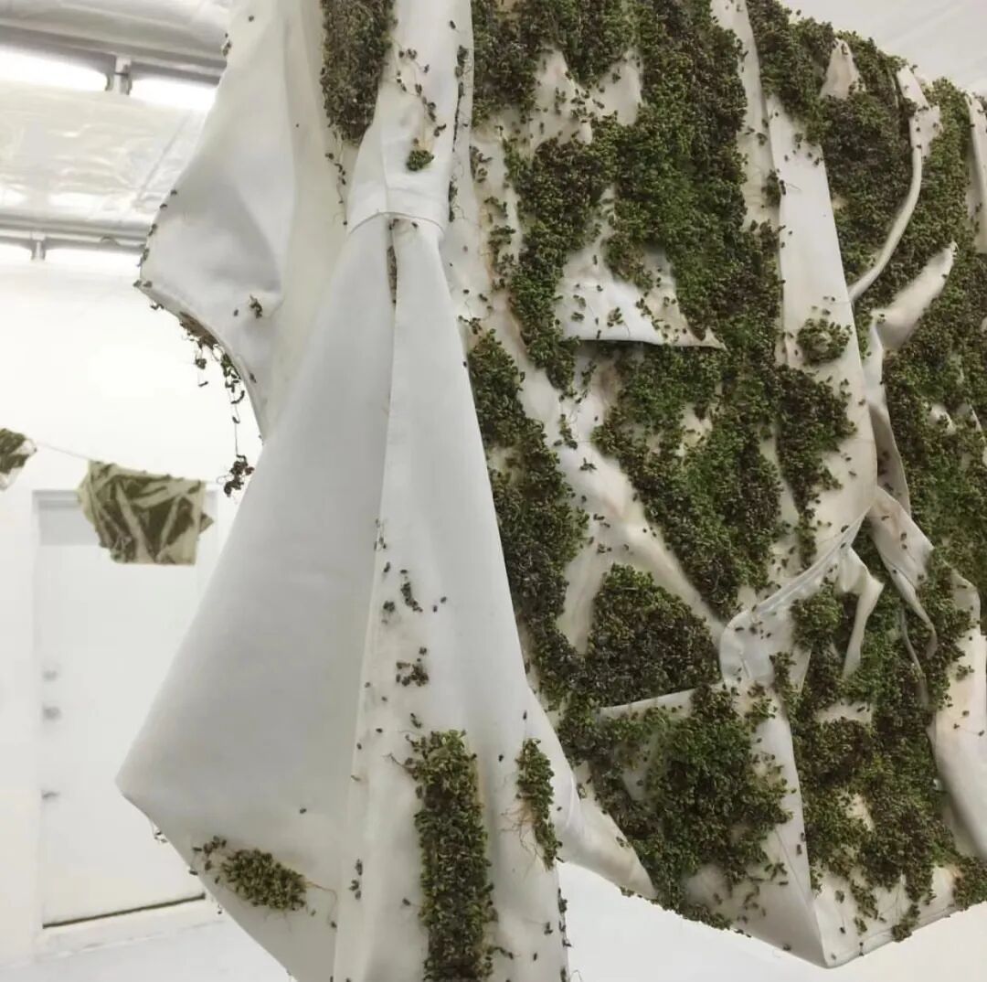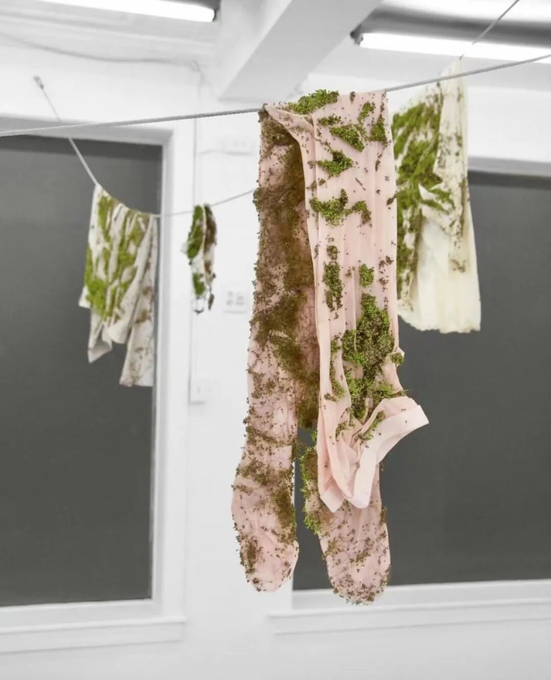 你曾经熟悉的衣服长满了奇异芽,腐蚀了陌生的身体。艺术家Bea Fremderman 设想了一个不远的世界末日世界。她的日常物品和衣服的活体雕塑似乎突然被遗弃了,让大自然在人类离开时迅速接管。