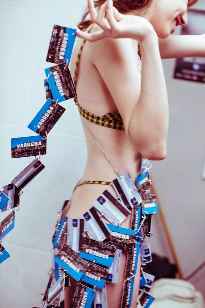 “我们正在创造着我们希望看到的世界。” Bryn 强调说。 不千篇一律的造型背后是,Vaquera千篇一律地用随手即得的面料去表现自己在日常中对于人和社会的思考。