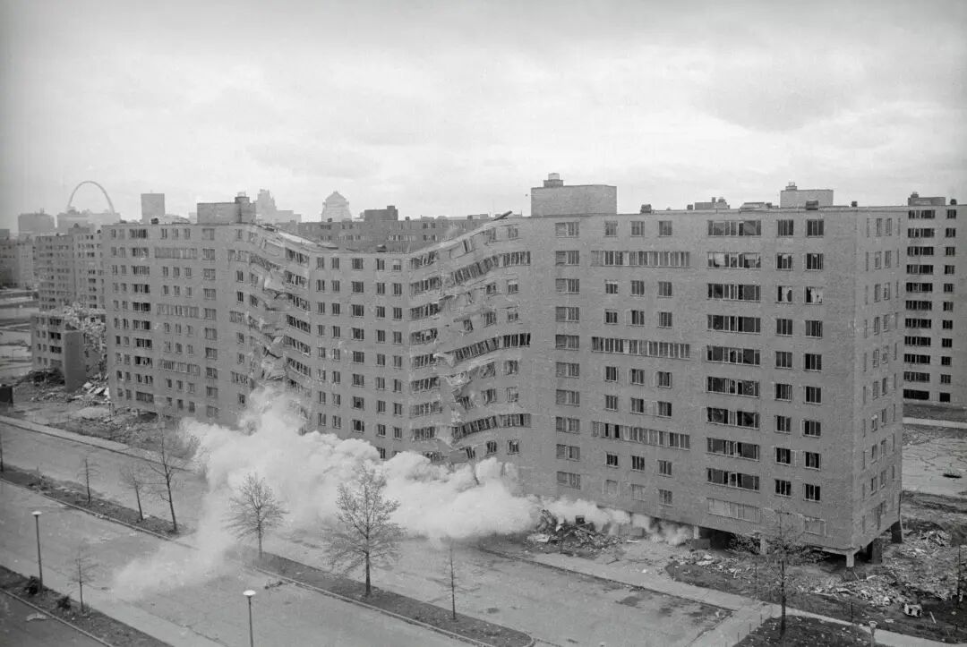 圣路易斯的Pruitt-Igoe公共住宅区于1951年开工建设,旨在为低收入居民提供补贴住房并增加城市收入。虽然最初是城市更新的胜利,但物业最终成为了公共住房中最严重的灾难之一。