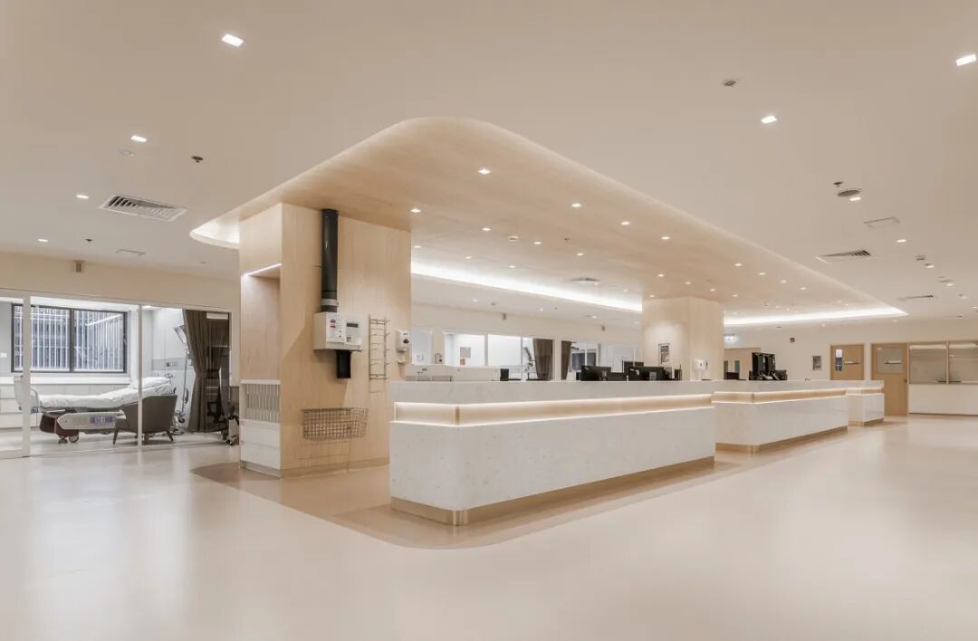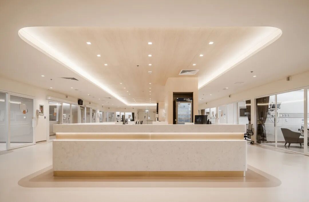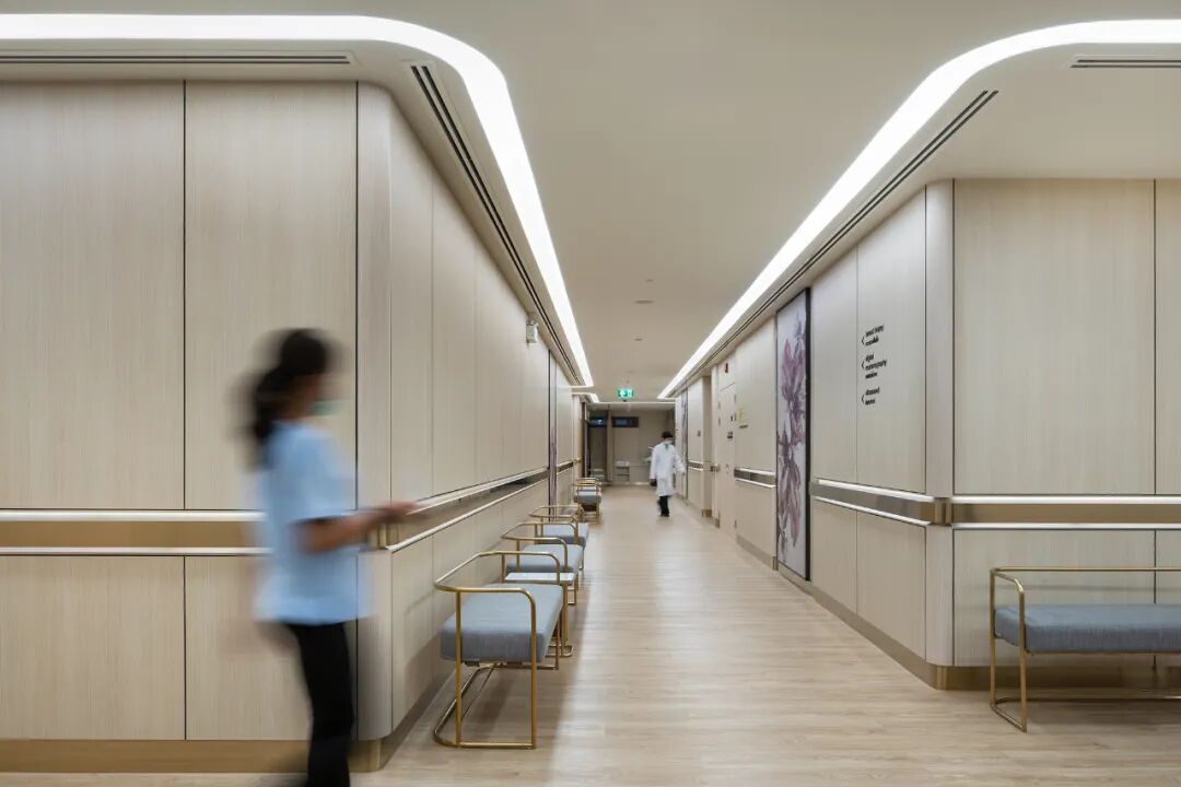 项目使用的浅色调色板和柔和的漫射光有助于营造放松和快乐的感觉,能够进一步促进患者健康。走廊上精选的定制艺术品和定制的细节,如金色护墙、踢脚板和家具,给人一种奢华的感觉。