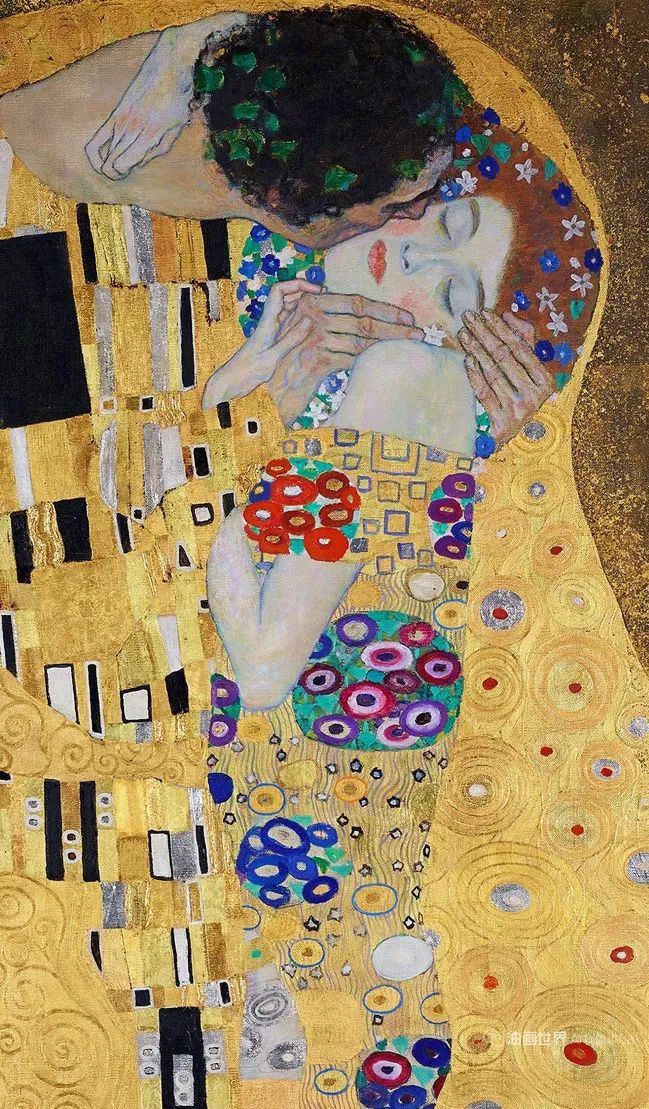 《吻》,是克里姆特的代表作之一。《吻》一幅抽象主题的寓意画,要表现的不是某个具体的人的爱,而是人类的普遍的共性之一:对异性的性爱。这幅画在风格上带有浓郁的伤感情调,也带有浓郁的东方装饰风味,可说是克里姆特画风的最典型的作品,它充分展示了画家独有的艺术特色。