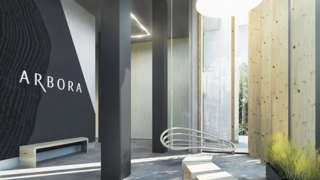 全木Arbora(奥伯拉)项目位于蒙特利尔新兴的格里芬敦社区的中心,是当时世界上最大的由大规模工程木材(Mass Timber)建造的建筑群。这一创新开发项目展示了大规模木构建筑是如何与多户住宅建筑和设计相匹配的。